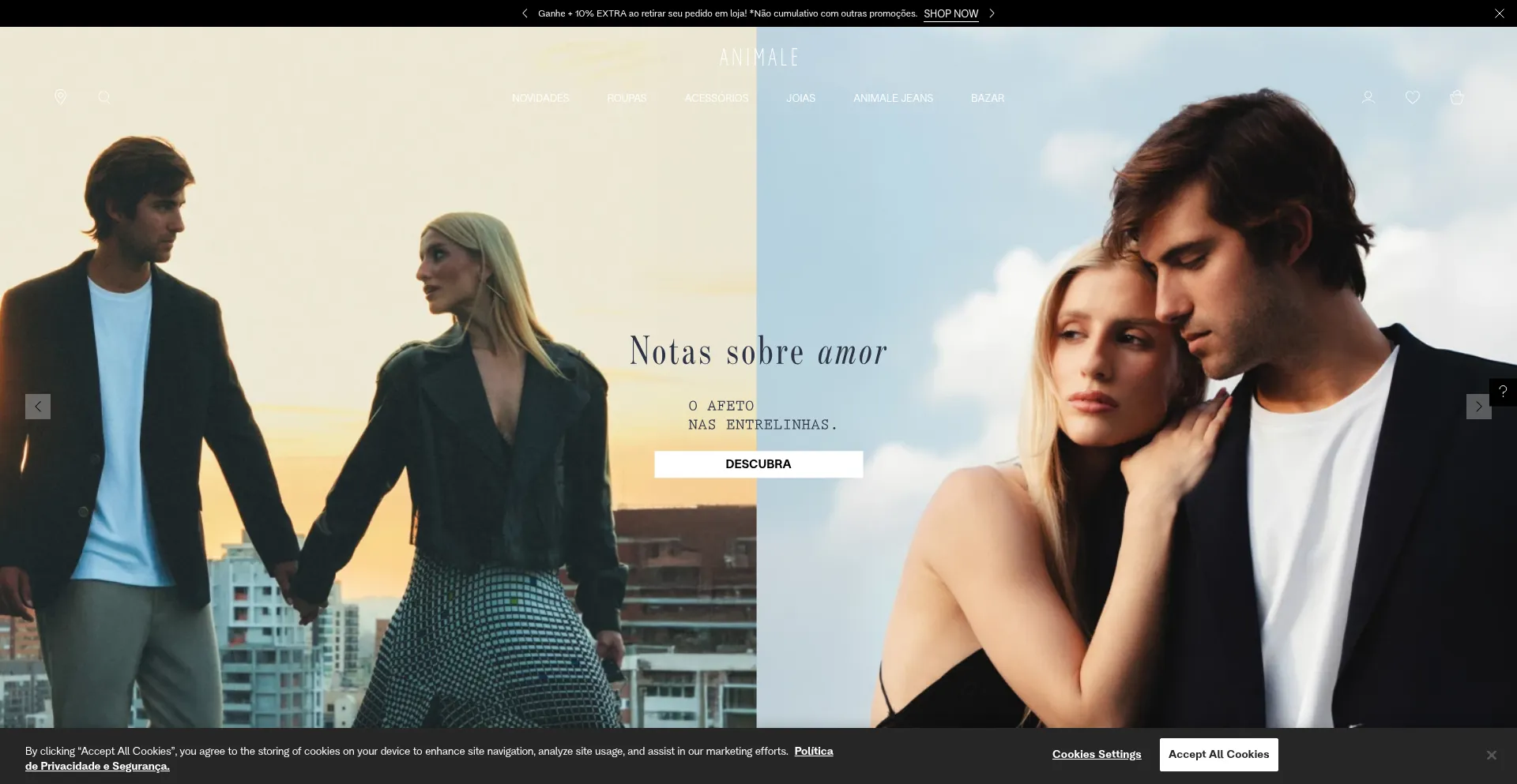 该网站实现数据收集表单,请求个人信息,包括姓名、电子邮件地址、电话号码或其他敏感详细信息。用户应验证 animale.com.br 的合法性并在提交个人数据前查看隐私政策。