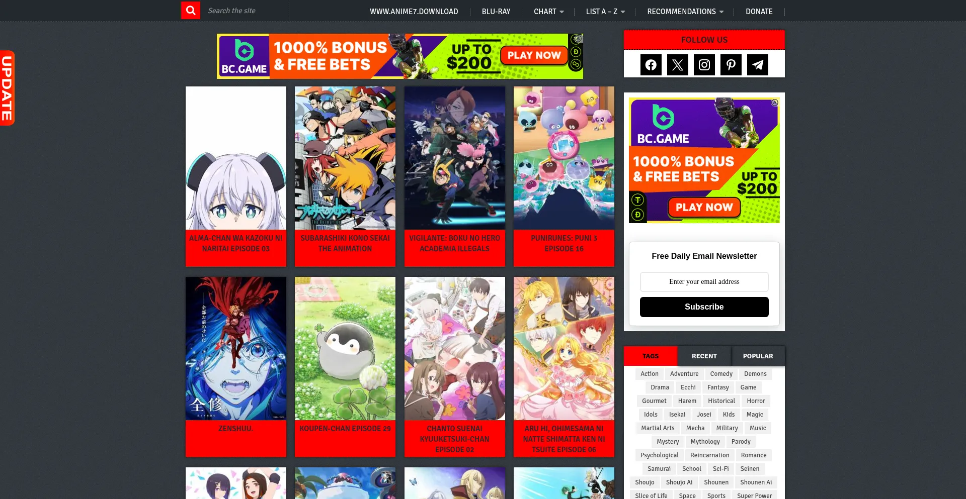 网站上存在社交媒体链接表明 anime7.download 在社交媒体上维护官方账户,这是可信度和参与度的积极信号。
