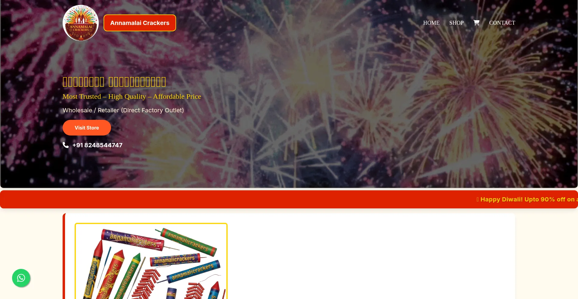 Buy crackers online from Annamalai Crackers, trusted manufacturer and retailer from Sattur. Safe, genuine, and on-time delivery for Diwali.