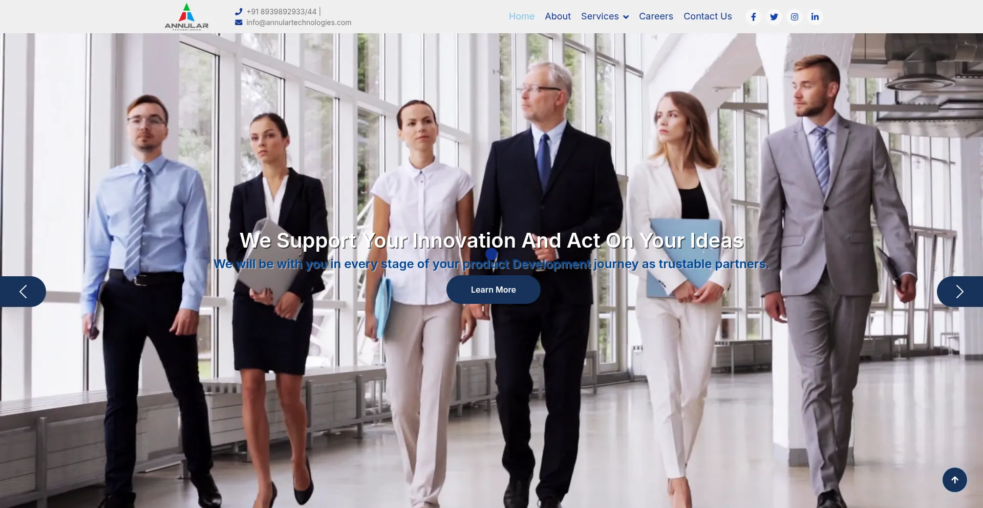annulartechnologies.com 使用 Bootstrap,这是一个广泛采用的开源响应式网页开发框架。Bootstrap 通过标准化组件和样式实现移动友好界面的高效创建。