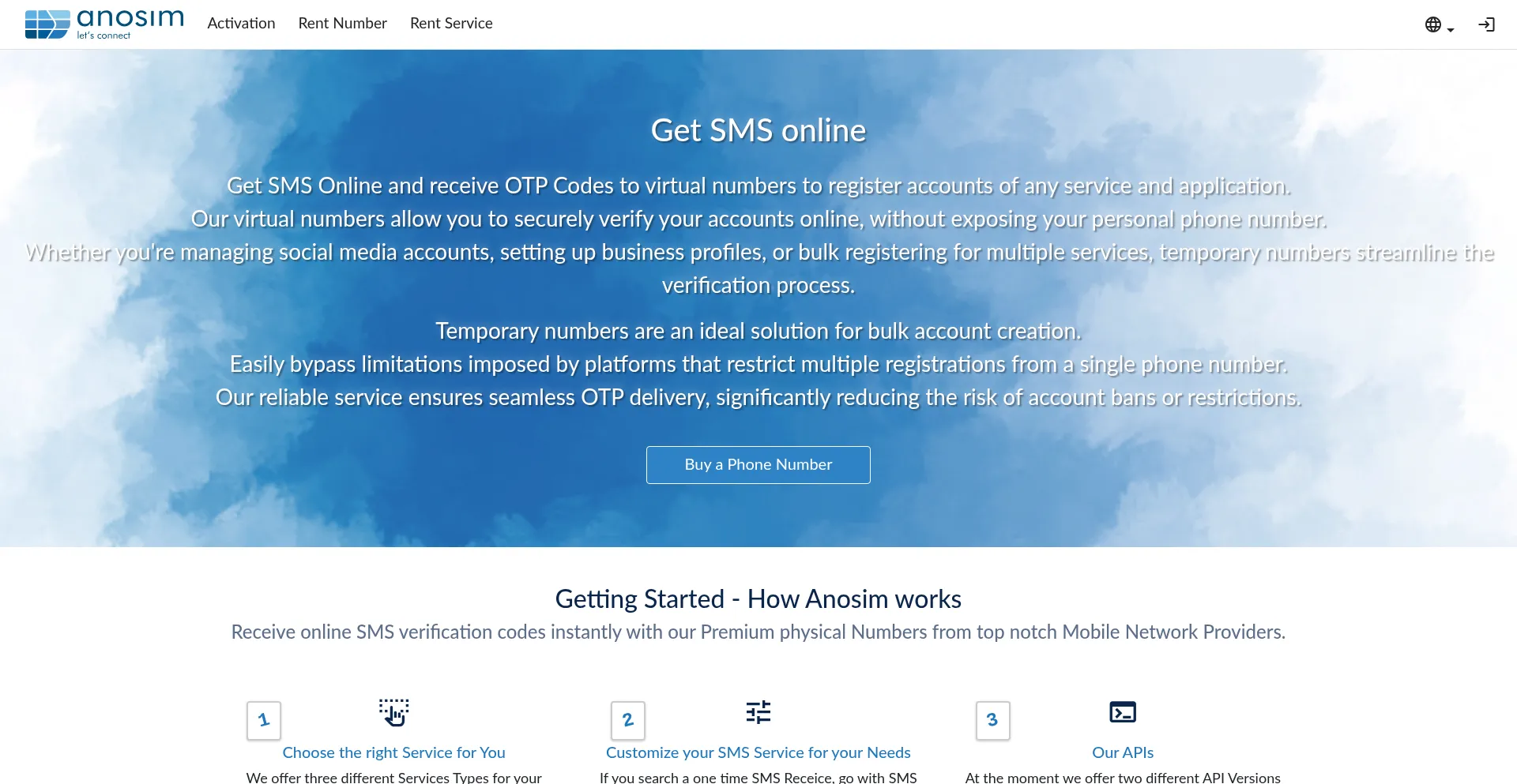 Temp Number for sms activation online | Get verification codes online • Anosim