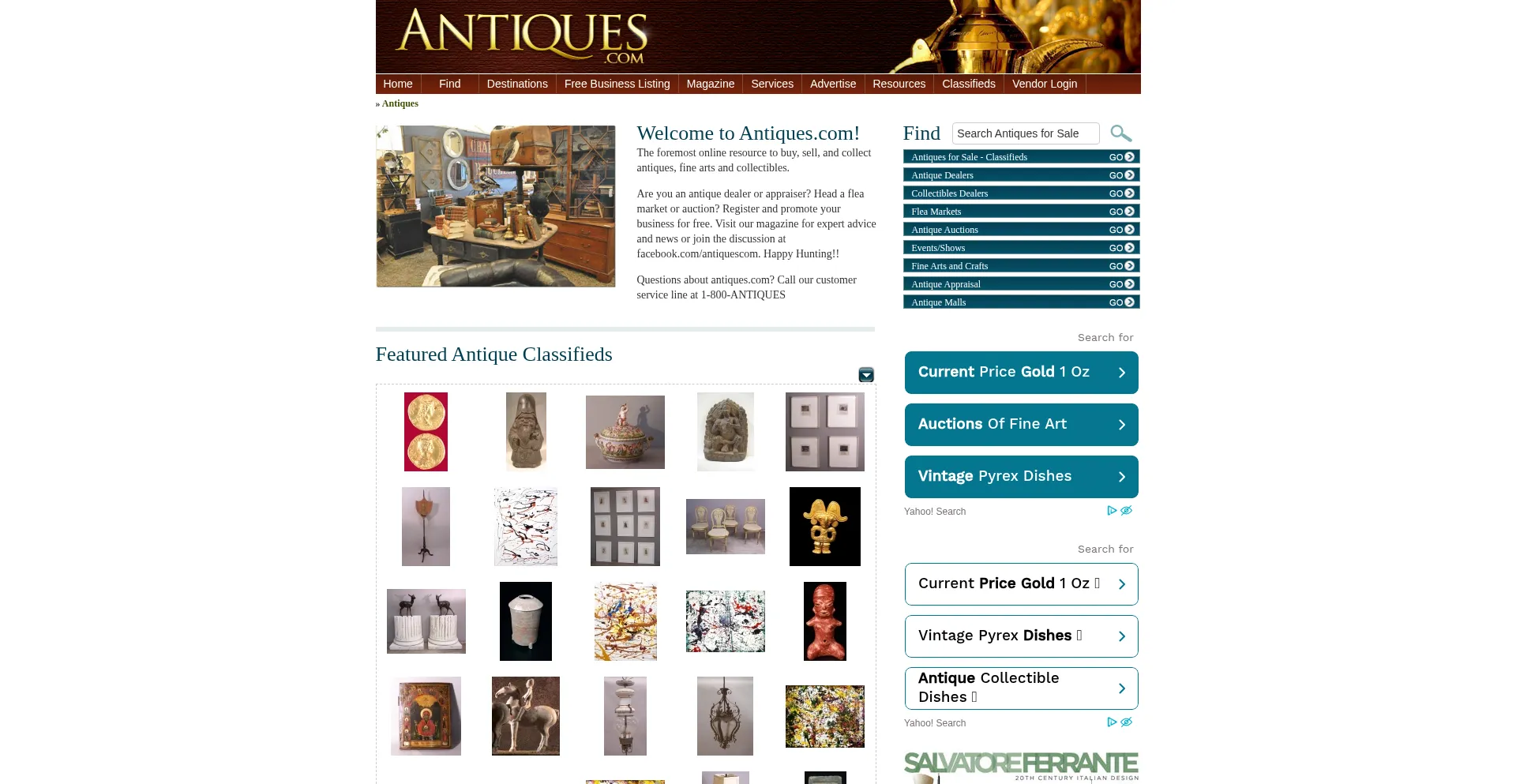 Antiques.com is the premier resource to find, buy, sell, and collect antiques of all kinds, including antique furniture, antique glass, jewelry and many more.