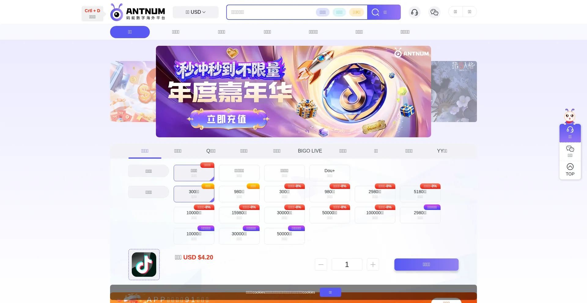 海外充值储值|海外代充|海外点卡充值|抖音充值优惠-ANTNUM