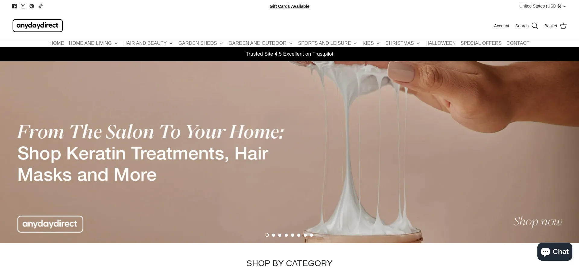 我们的分析器确定网站 anydaydirect.com 使用的是 Shopify CMS。Shopify 是一个流行的电子商务平台,全球约有 4.4% 的网站使用 Shopify。Shopify 通常确保购物体验的安全性,但访问者应小心某些第三方集成,因其若未经适当验证,可能会带来安全风险。