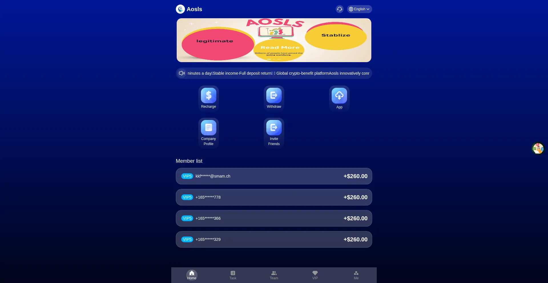 Aosls.com 运营欺诈性金融平台,推广具有不现实回报承诺的欺骗性投资机会。安全分析表明该平台采用与 庞氏骗局 和预付费欺诈一致的策略,旨在提取用户资金和个人信息。