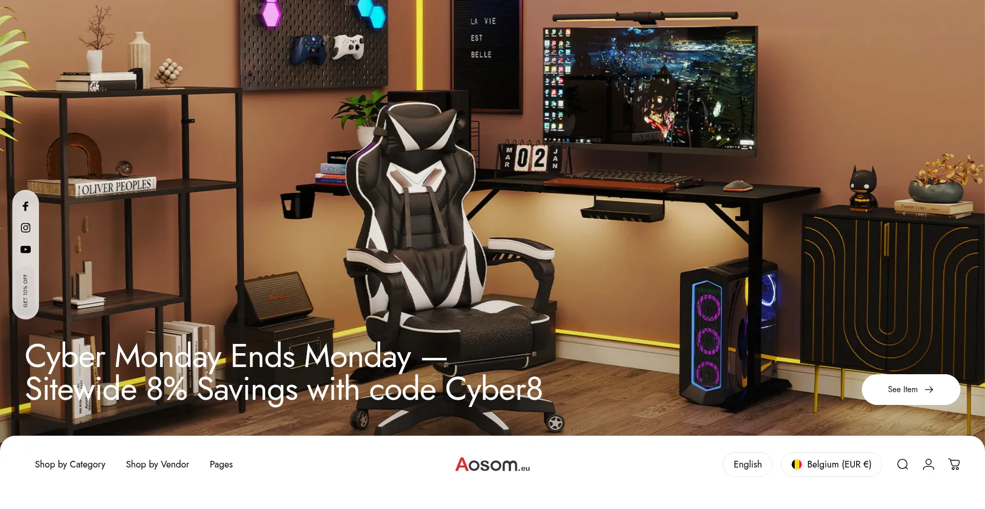 该网站利用流行产品名称和品牌来吸引流量并产生用户兴趣。这些产品可能通过促销活动或折扣策略提供,旨在增加 aosom.eu 的访客参与度和转化率。