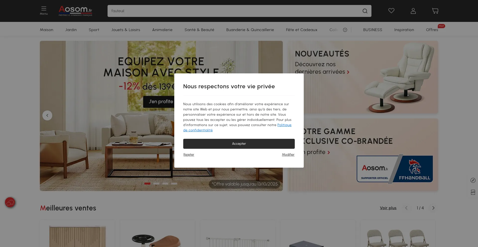 aosom.fr 拥有可用的 iOS 移动应用程序,表明为 Apple 设备用户提供跨平台可访问性。