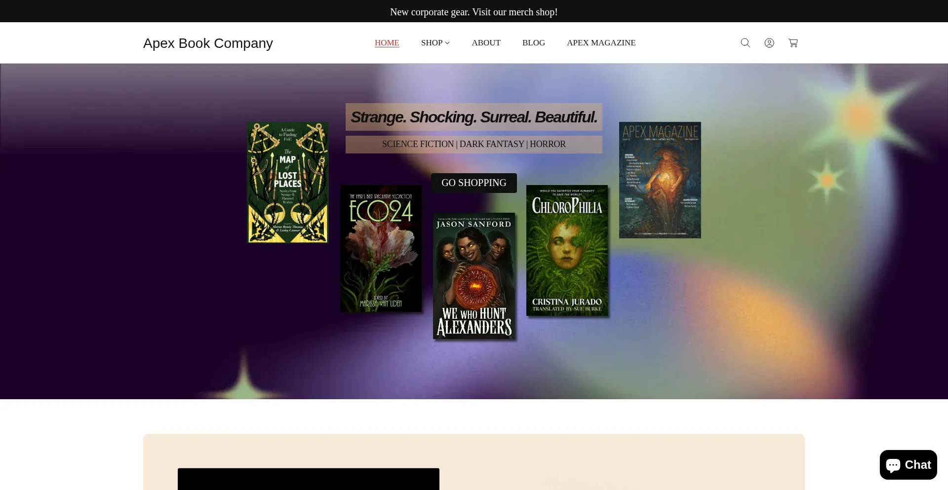 Strange. Beautiful. Shocking. Surreal. A small press publisher of science fiction, fantasy, and horror books in print and digital forms.