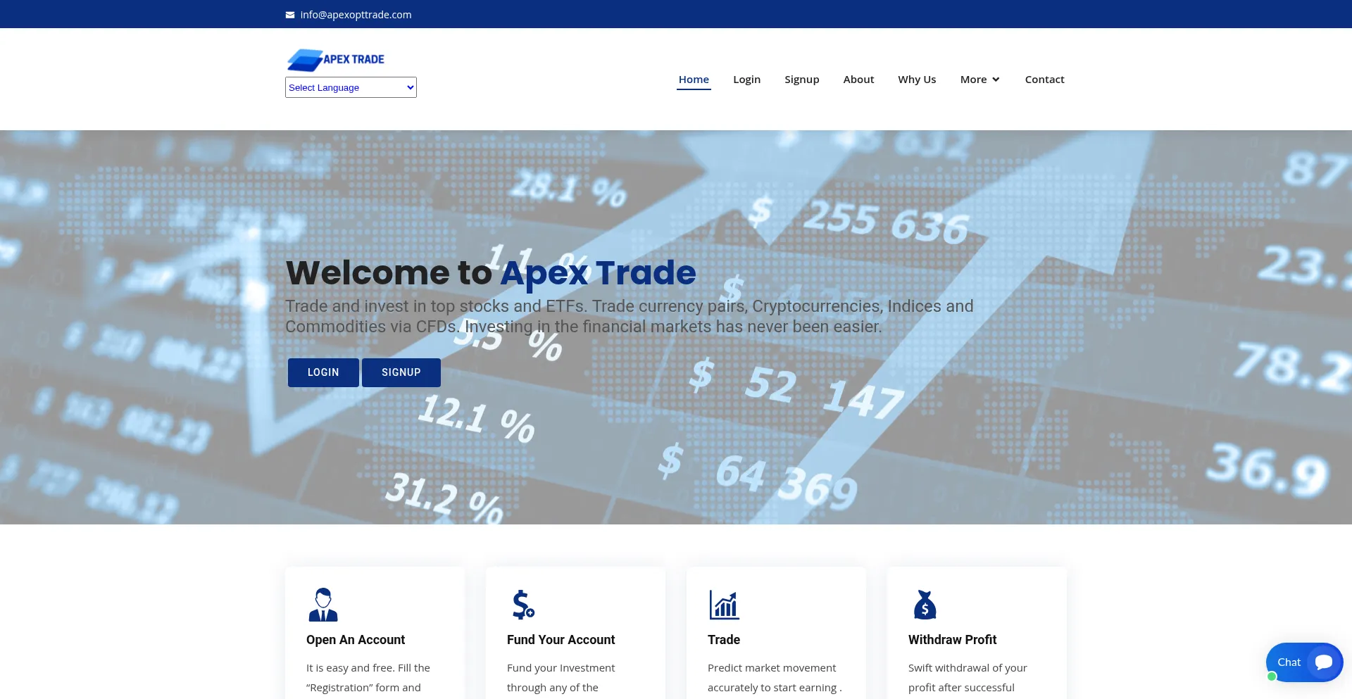 apexopttrade.com 使用 Bootstrap,这是一个广泛采用的开源响应式网页开发框架。Bootstrap 通过标准化组件和样式实现移动友好界面的高效创建。