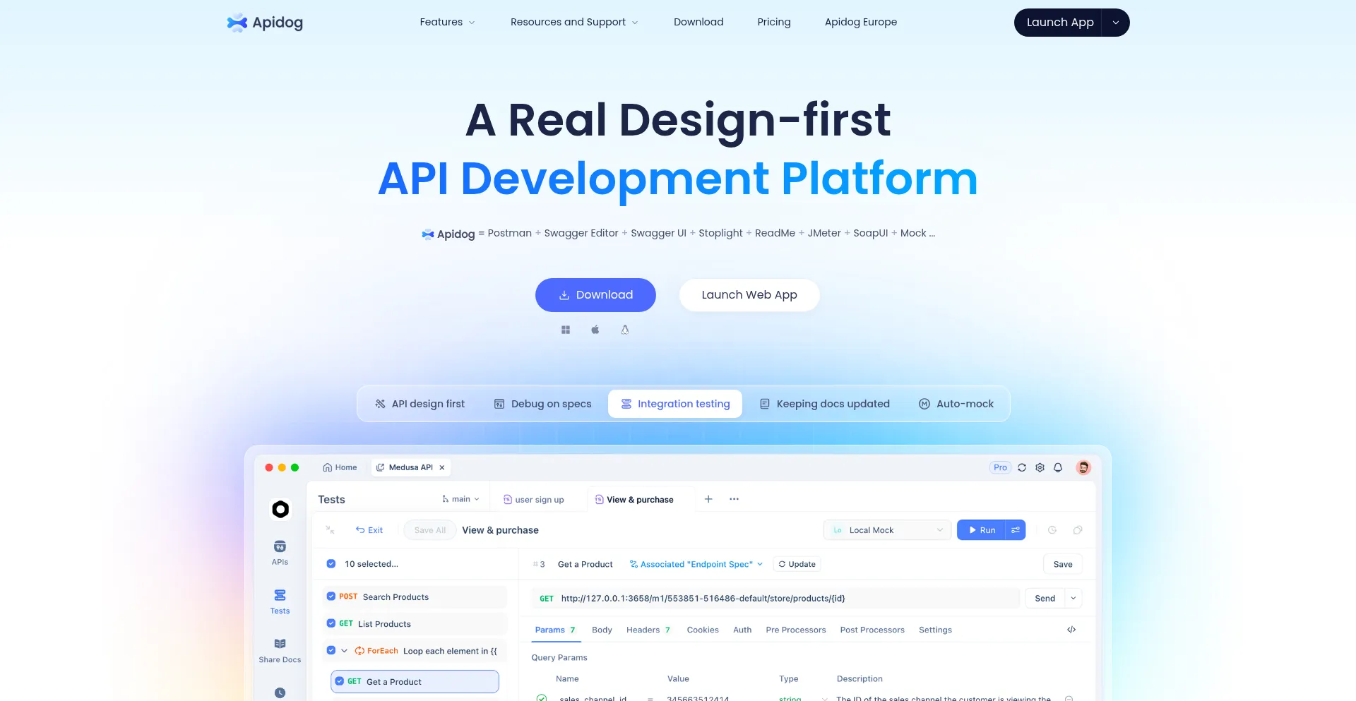 Apidog: All-in-One API Platform: Design, Debug, Mock, Test, and Document
