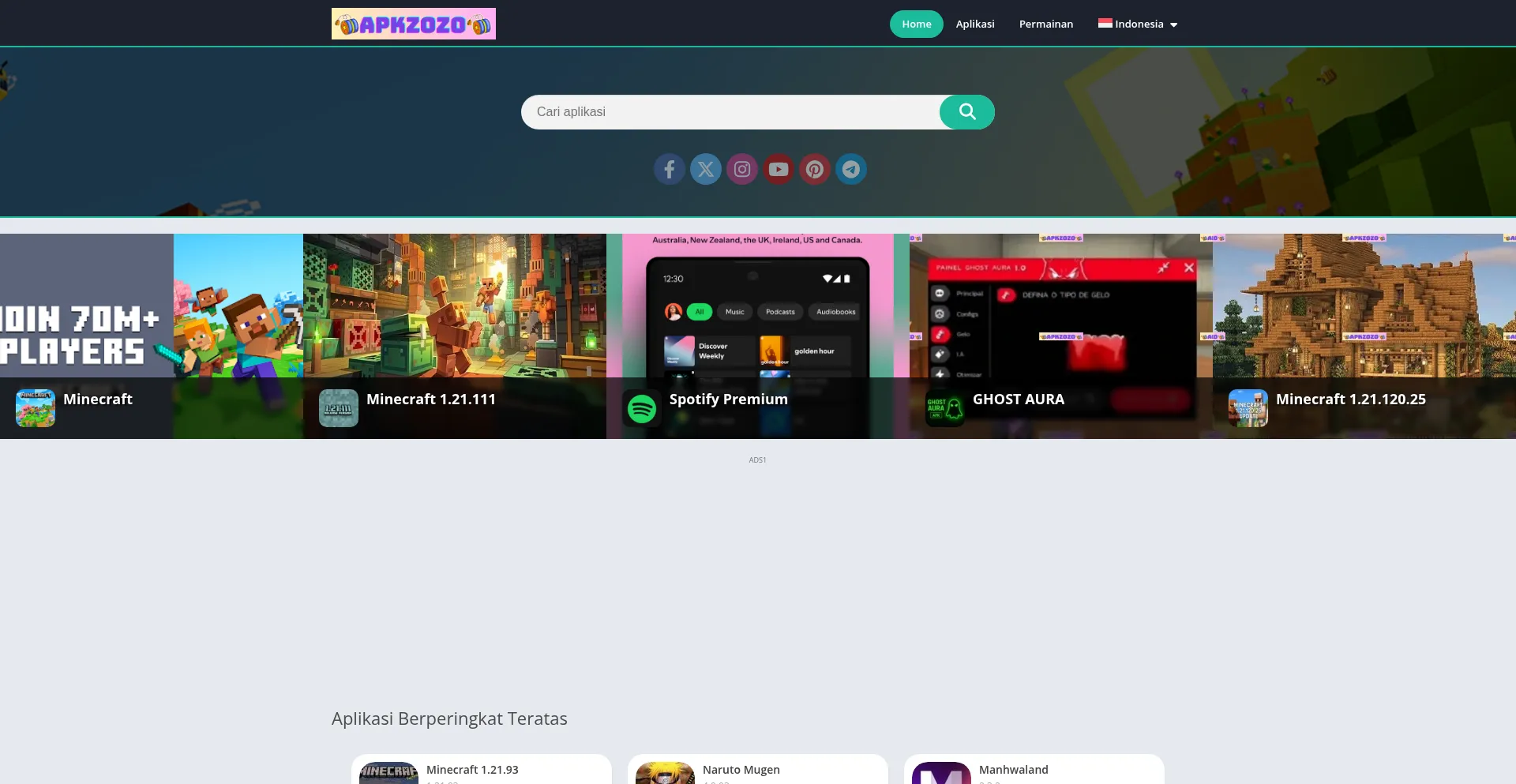 网站上存在社交媒体链接表明 apkzozo.com 在社交媒体上维护官方账户,这是可信度和参与度的积极信号。