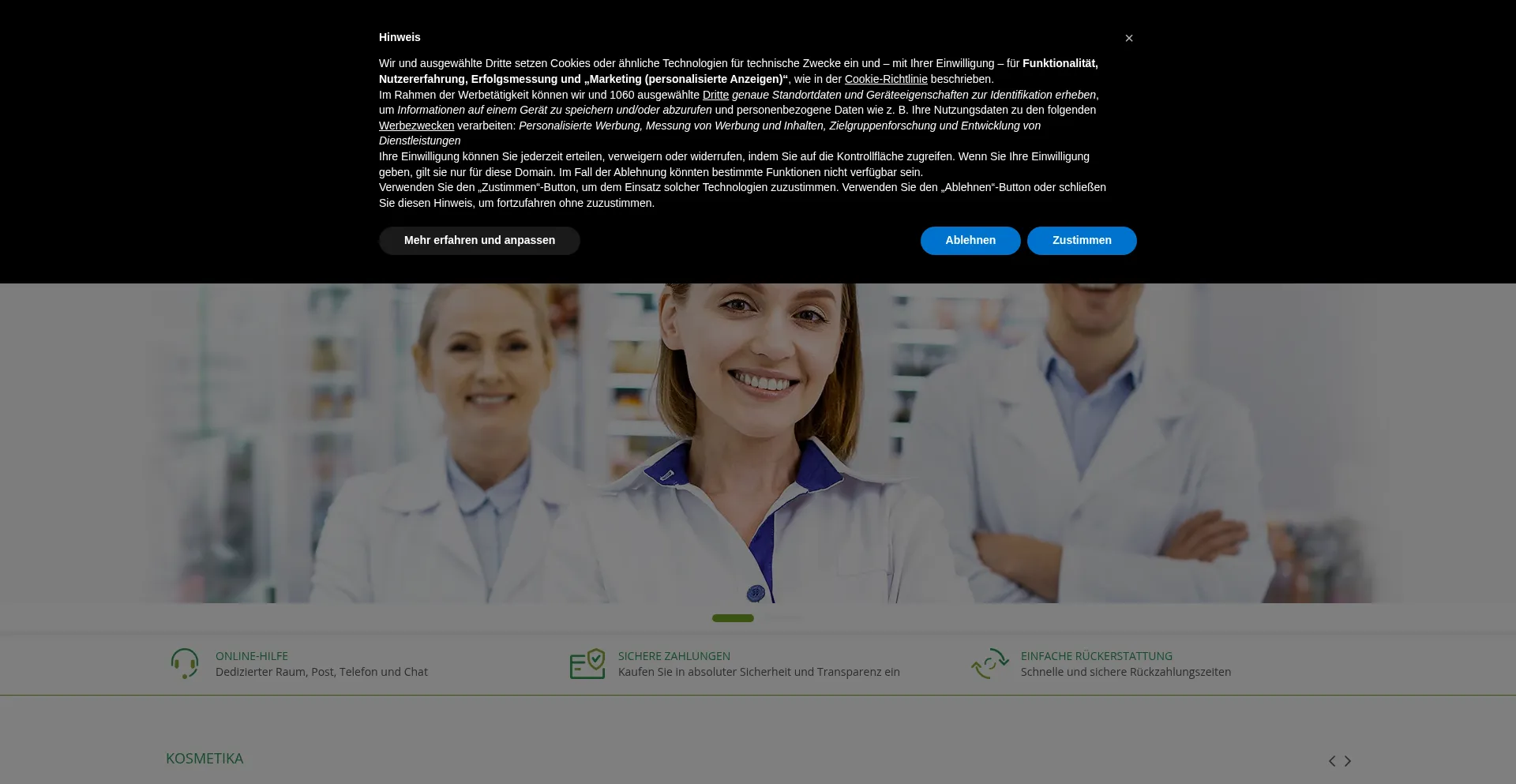 该网站显示来自认可机构的安全认证或信任印章,表明符合安全标准、数据保护协议或行业法规。来自 apothekeloreto.de 的信任印章表明遵守已建立的安全实践和运营透明度。