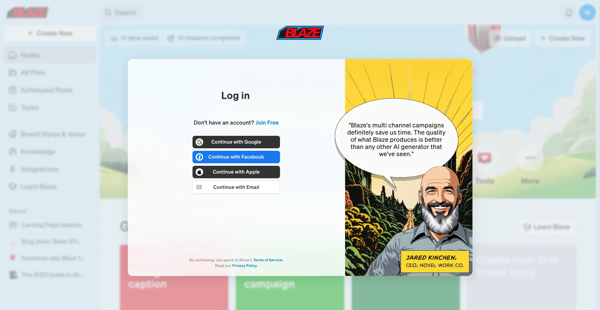 网站 app.blaze.ai 被配置为一个带有移动应用功能的网络应用。用户可以直接将该网站安装到设备的桌面上,以快速访问并享受类似移动应用的体验。