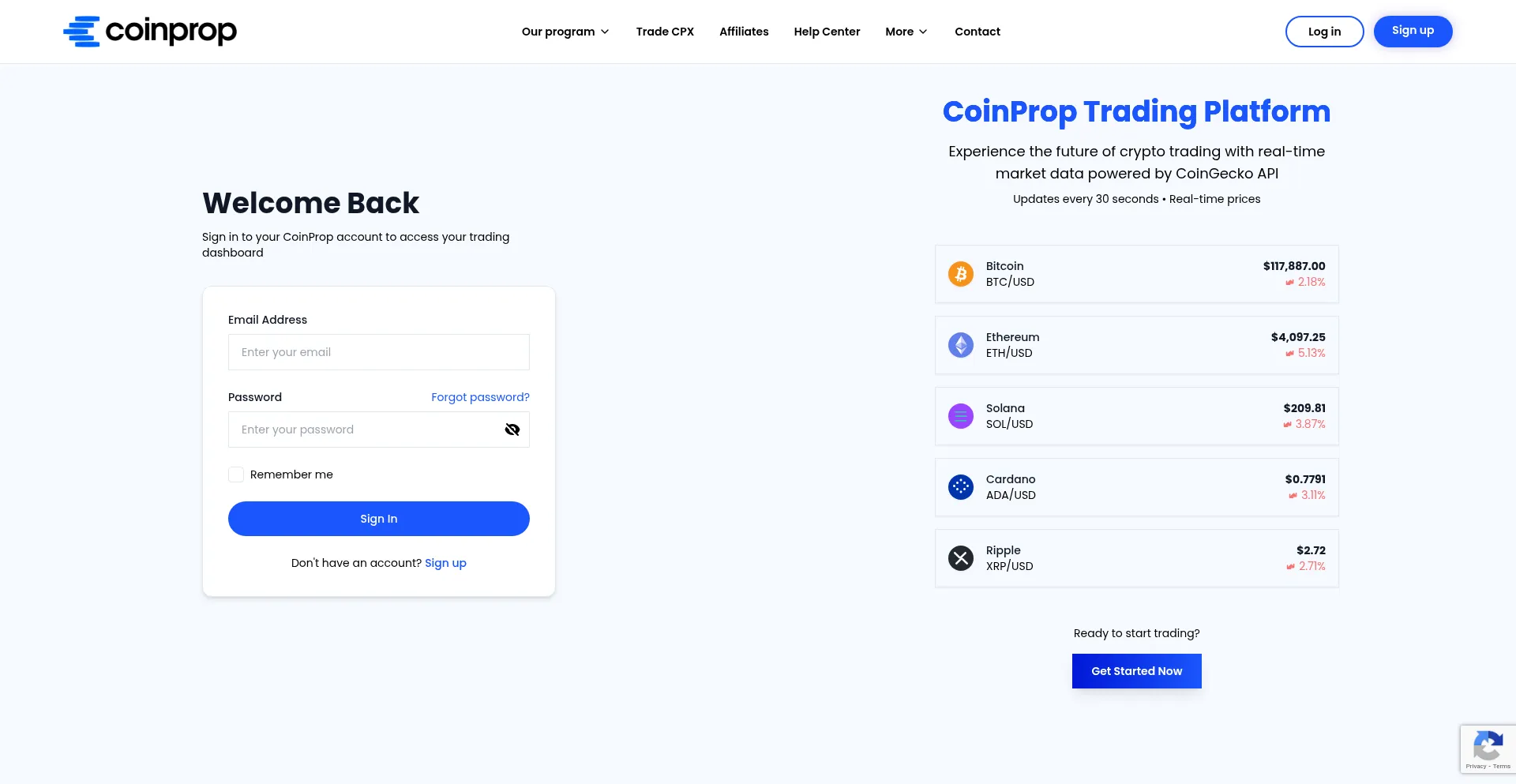 该网站实现数据收集表单,请求个人信息,包括姓名、电子邮件地址、电话号码或其他敏感详细信息。用户应验证 app.coinprop.io 的合法性并在提交个人数据前查看隐私政策。