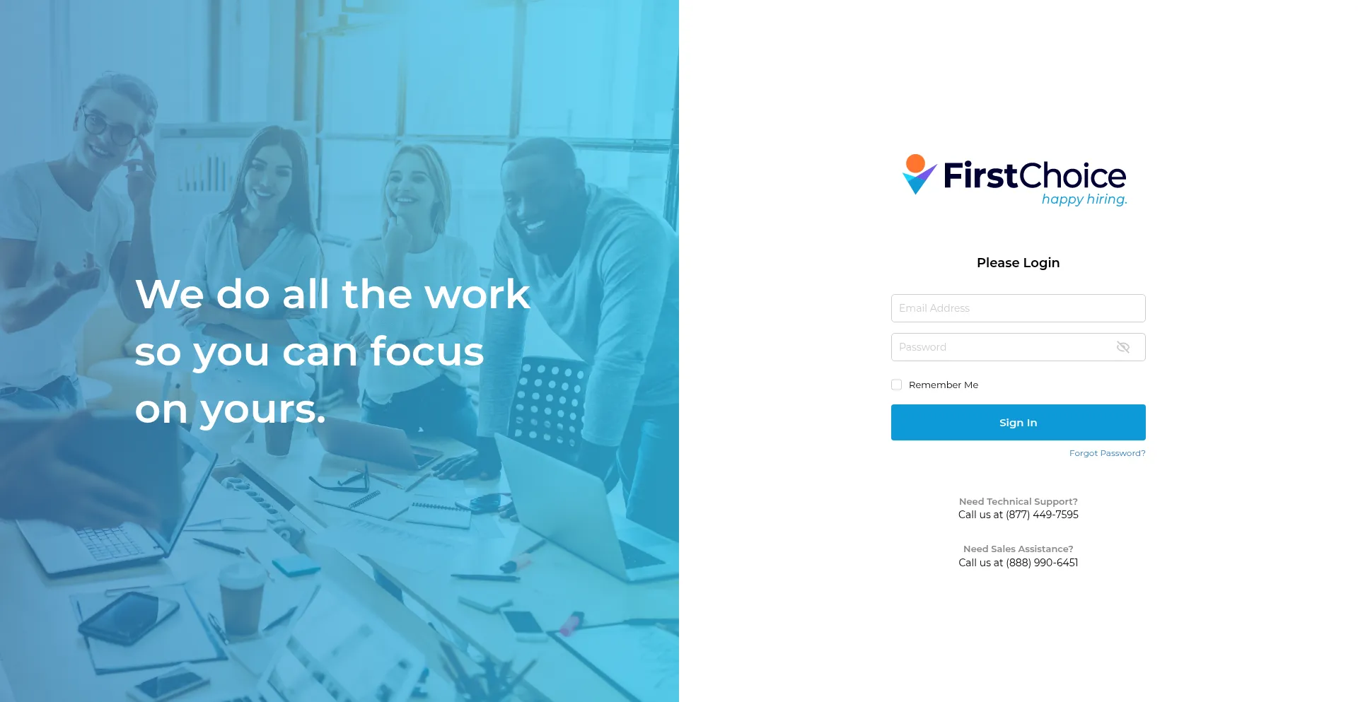 该网站实现数据收集表单,请求个人信息,包括姓名、电子邮件地址、电话号码或其他敏感详细信息。用户应验证 app.firstchoicehiring.com 的合法性并在提交个人数据前查看隐私政策。