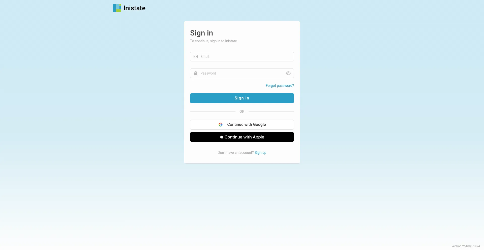 该网站实现数据收集表单,请求个人信息,包括姓名、电子邮件地址、电话号码或其他敏感详细信息。用户应验证 app.inistate.com 的合法性并在提交个人数据前查看隐私政策。