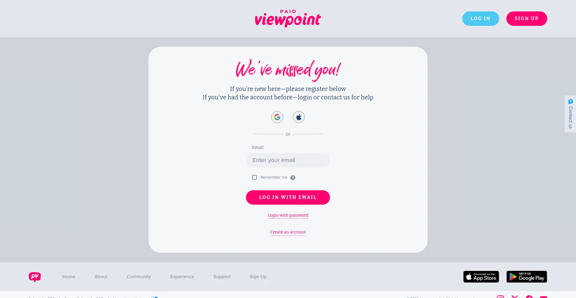 网站上存在社交媒体链接表明 app.paidviewpoint.com 在社交媒体上维护官方账户,这是可信度和参与度的积极信号。