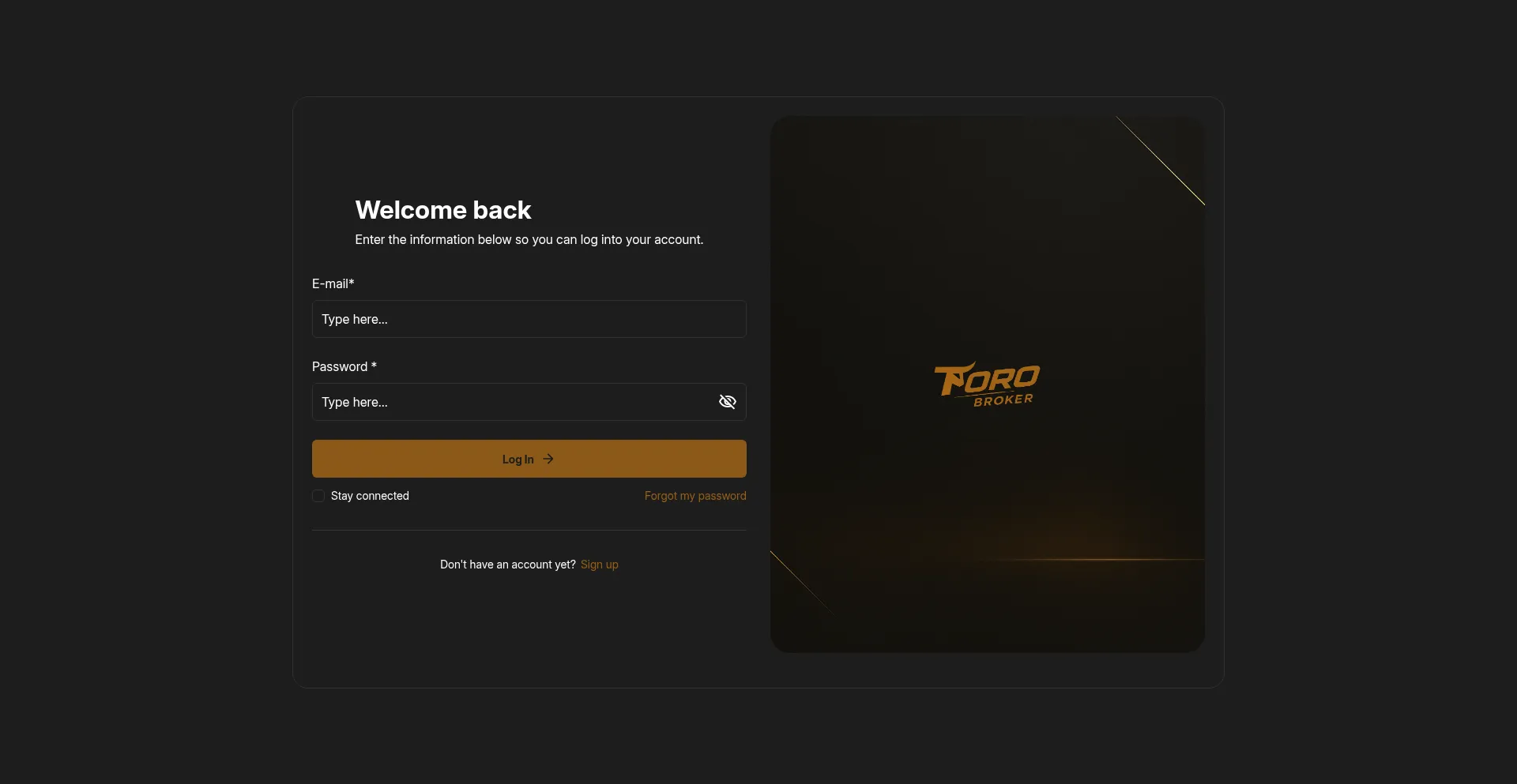 该网站实现数据收集表单,请求个人信息,包括姓名、电子邮件地址、电话号码或其他敏感详细信息。用户应验证 app.toro-broker.com 的合法性并在提交个人数据前查看隐私政策。