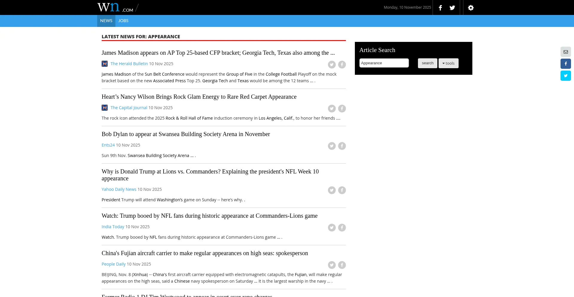 Appearance on WN Network delivers the latest Videos and Editable pages for News & Events, including Entertainment, Music, Sports, Science and more, Sign up and share your playli...