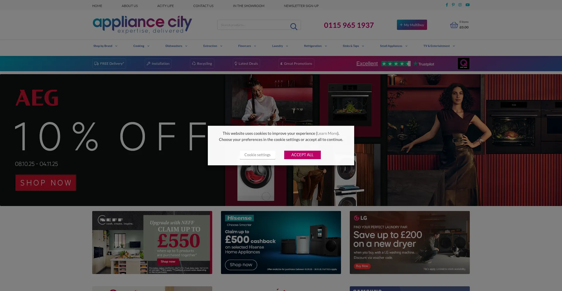 该网站实现符合GDPR或CCPA等隐私法规的cookie同意机制。这表明 appliancecity.co.uk 遵守数据保护标准并为用户提供对个人数据收集实践的控制。