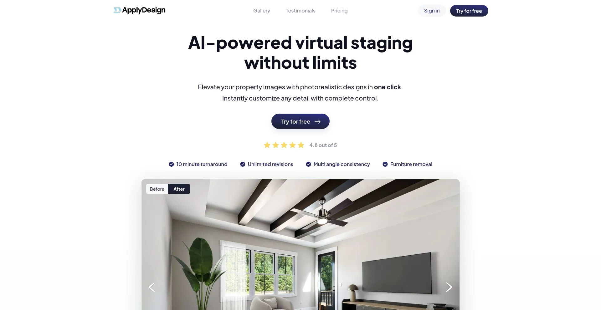 Apply Design is a virtual staging software that allows real estate professionals to upload any property image and automatically create photorealistic virtual staging results in ...