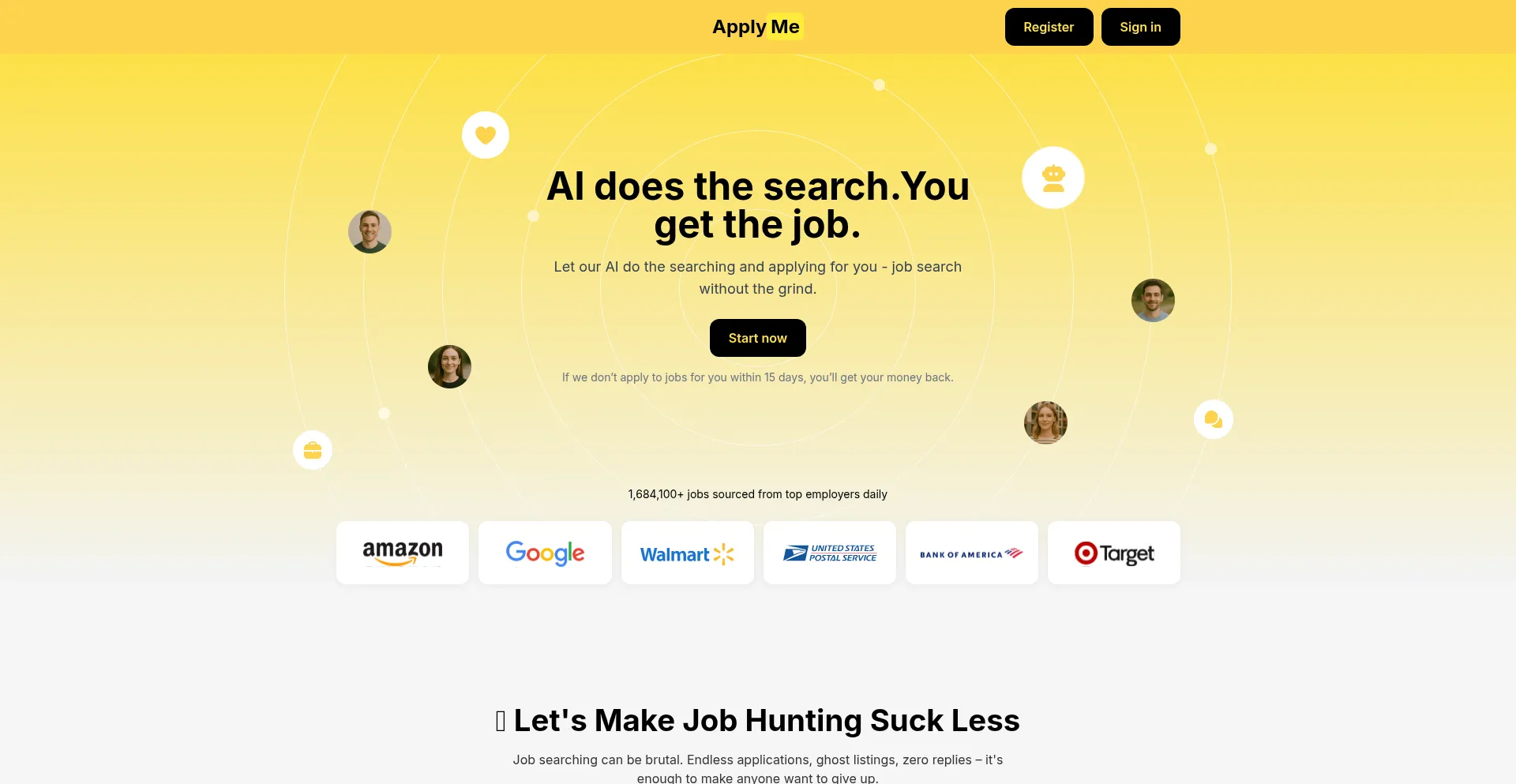 该网站实现数据收集表单,请求个人信息,包括姓名、电子邮件地址、电话号码或其他敏感详细信息。用户应验证 applyme.co 的合法性并在提交个人数据前查看隐私政策。