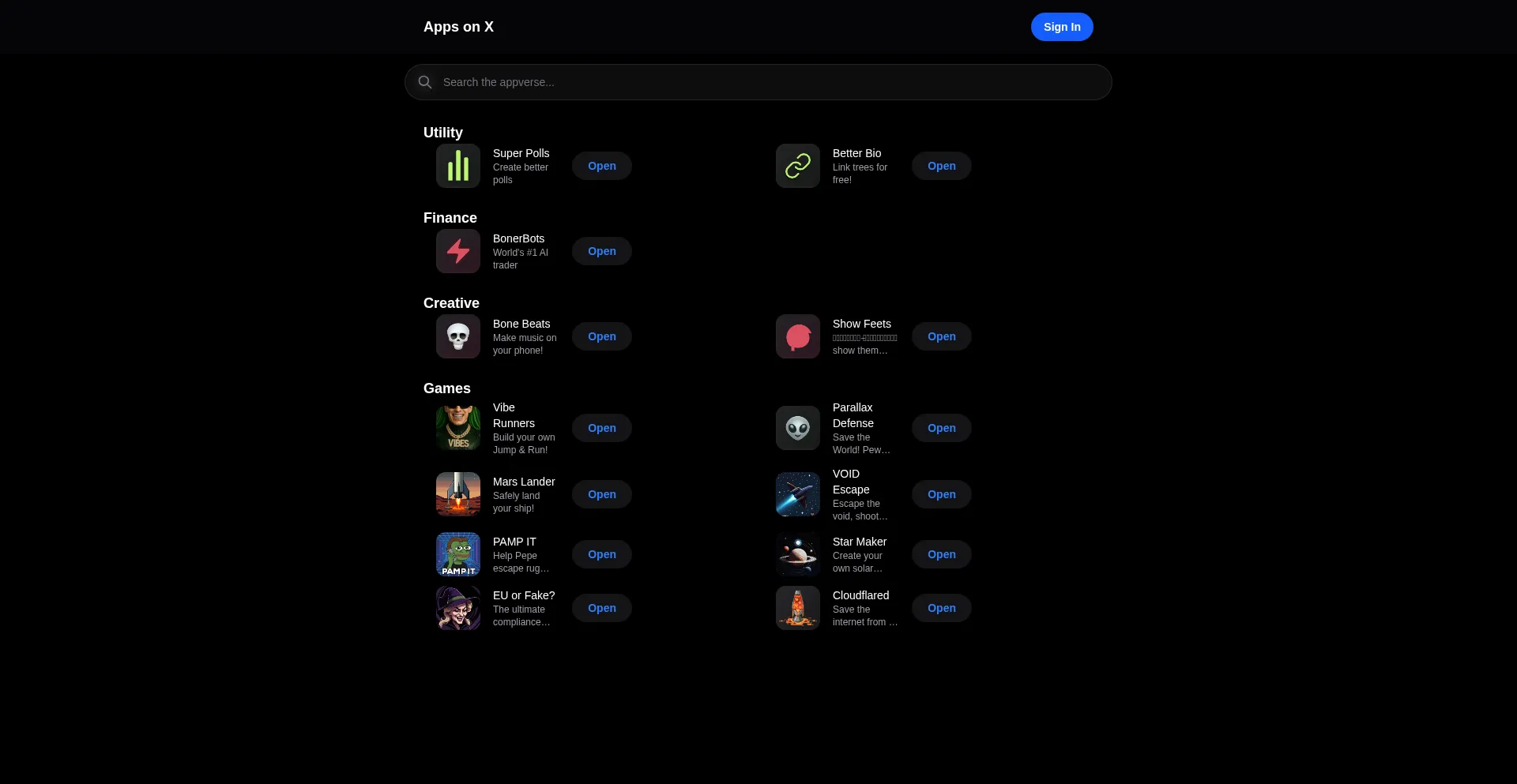 Explore a curated list of applications designed for the X platform. Find tools to enhance your X experience, from analytics to games and more.