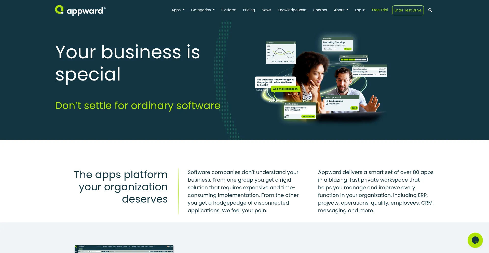 Appward all-in-one ERP, business management and collaboration software helps you manage and improve every department in your organization.