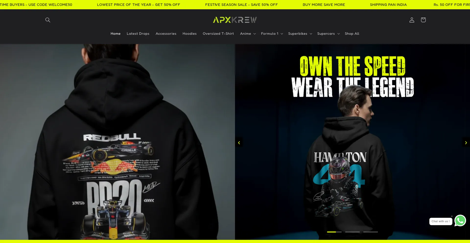 Level up your fit with APXKrew. Anime & Formula 1 hoodies & oversized tees, each drop exclusive, each print a flex. Streetwear made for main characters