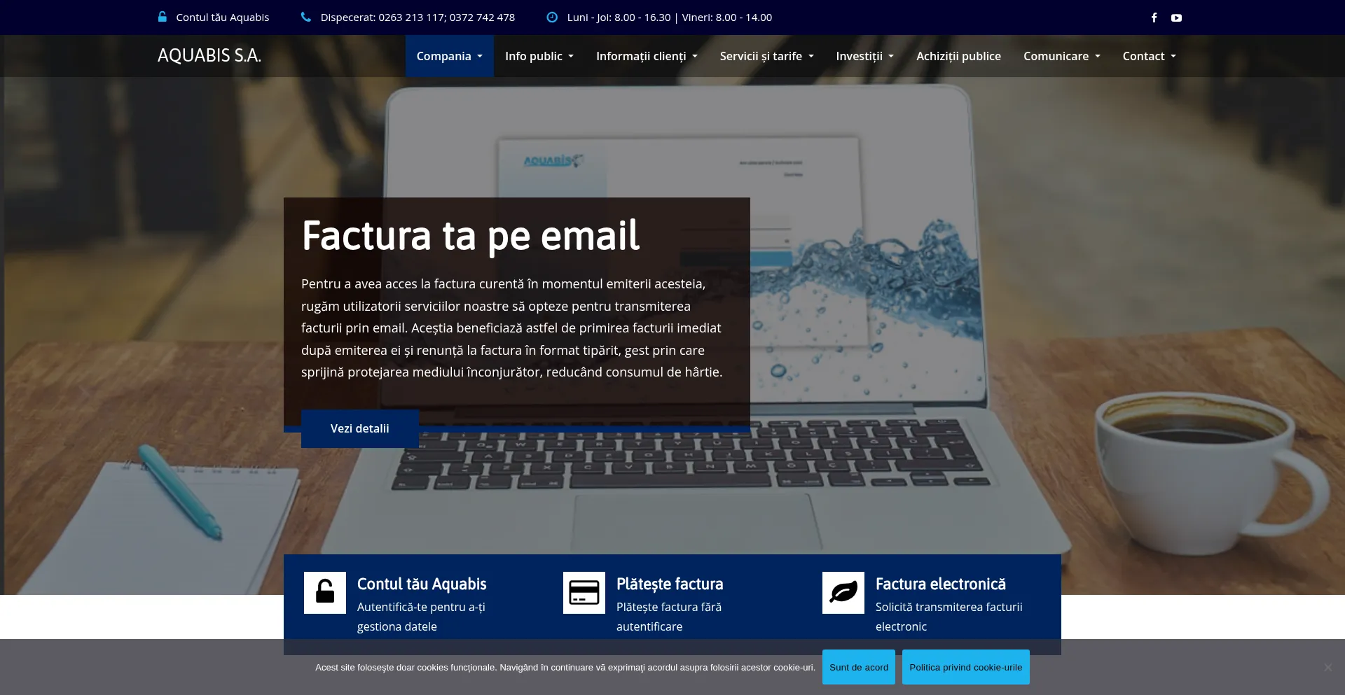网站上存在社交媒体链接表明 aquabis.ro 在社交媒体上维护官方账户,这是可信度和参与度的积极信号。