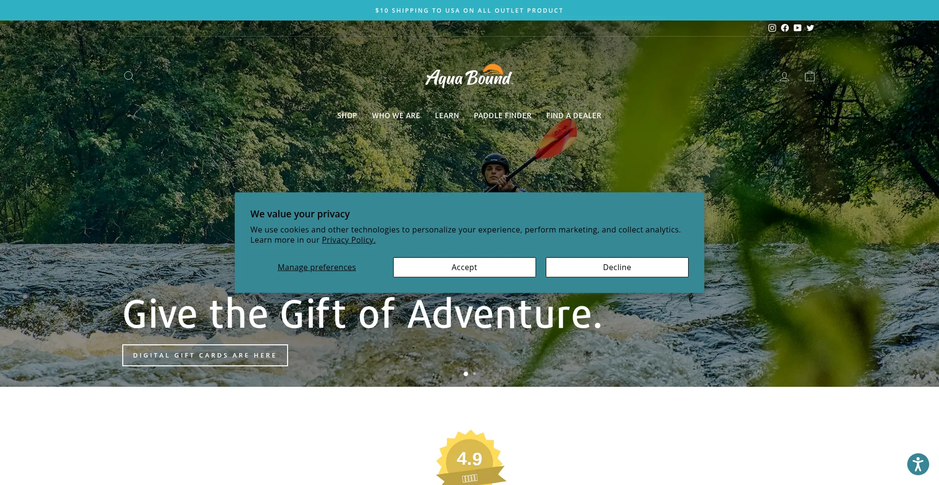 该网站实现符合GDPR或CCPA等隐私法规的cookie同意机制。这表明 aquabound.com 遵守数据保护标准并为用户提供对个人数据收集实践的控制。