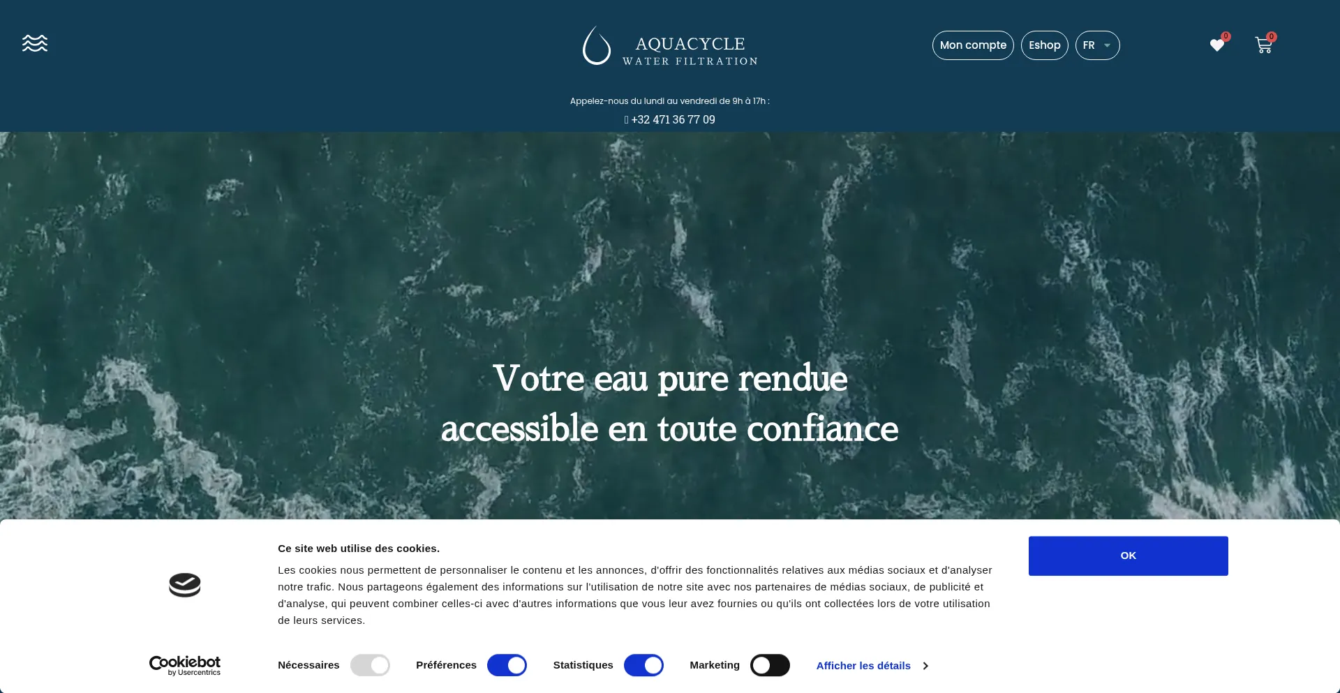 Aquacycle, votre expert en purification d'eau. Une eau pure et saine grâce à des solution performants, accessibles et expédiés rapidement.