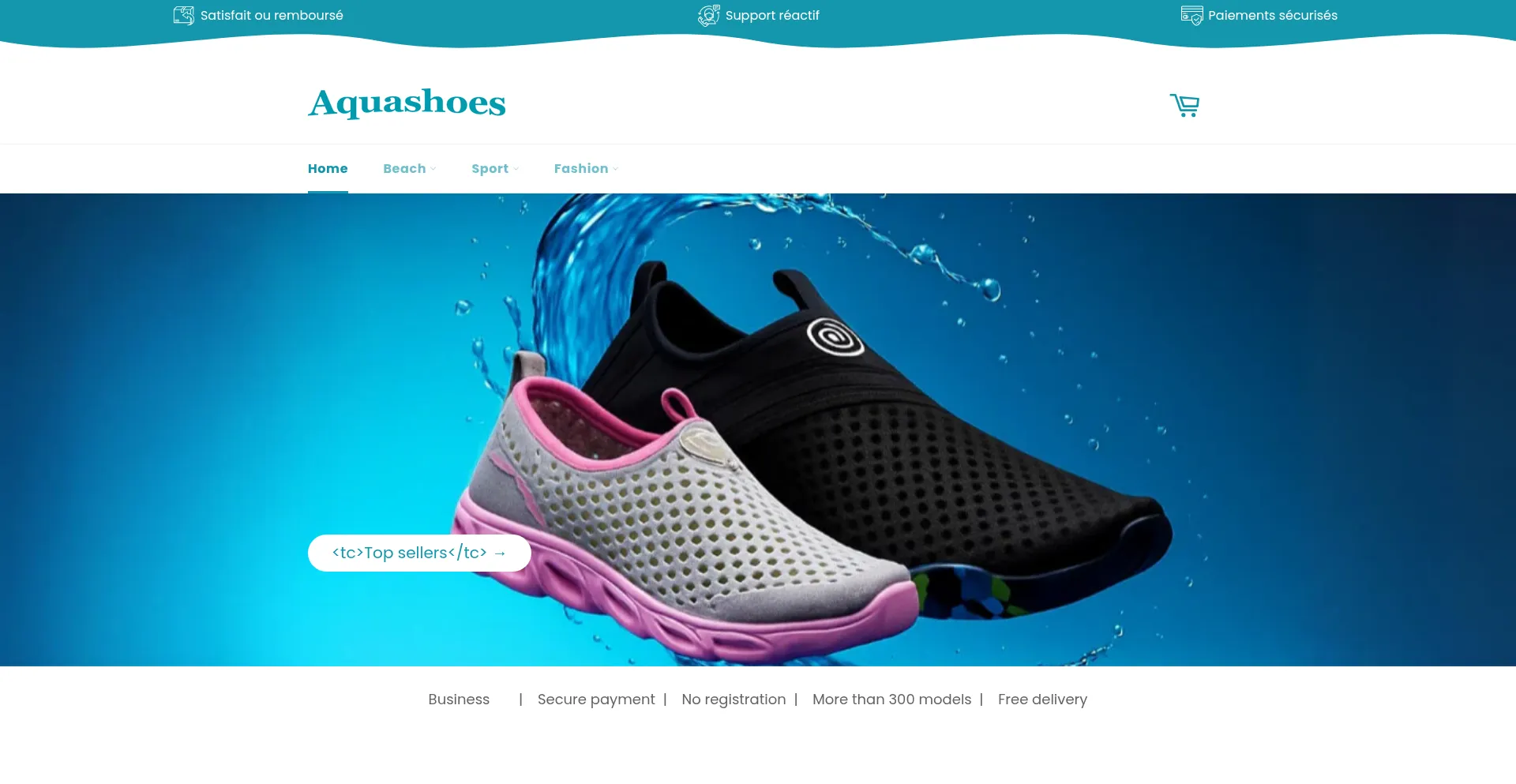 分析表明 aquashoes.fr 作为电子商务平台运营,促进商品或服务的在线交易。该网站实现了购物车功能、支付处理系统和产品目录功能,这些是商业零售运营的典型特征。
