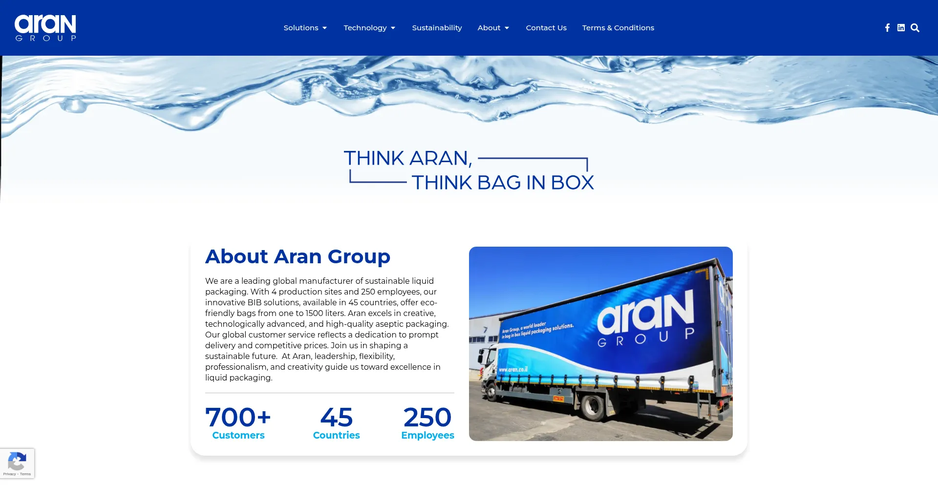 Aran Group is a global leader in aseptic bag-in-box and liquid packaging systems for food and non-food industries. Serving 45 countries with sustainable innovation.