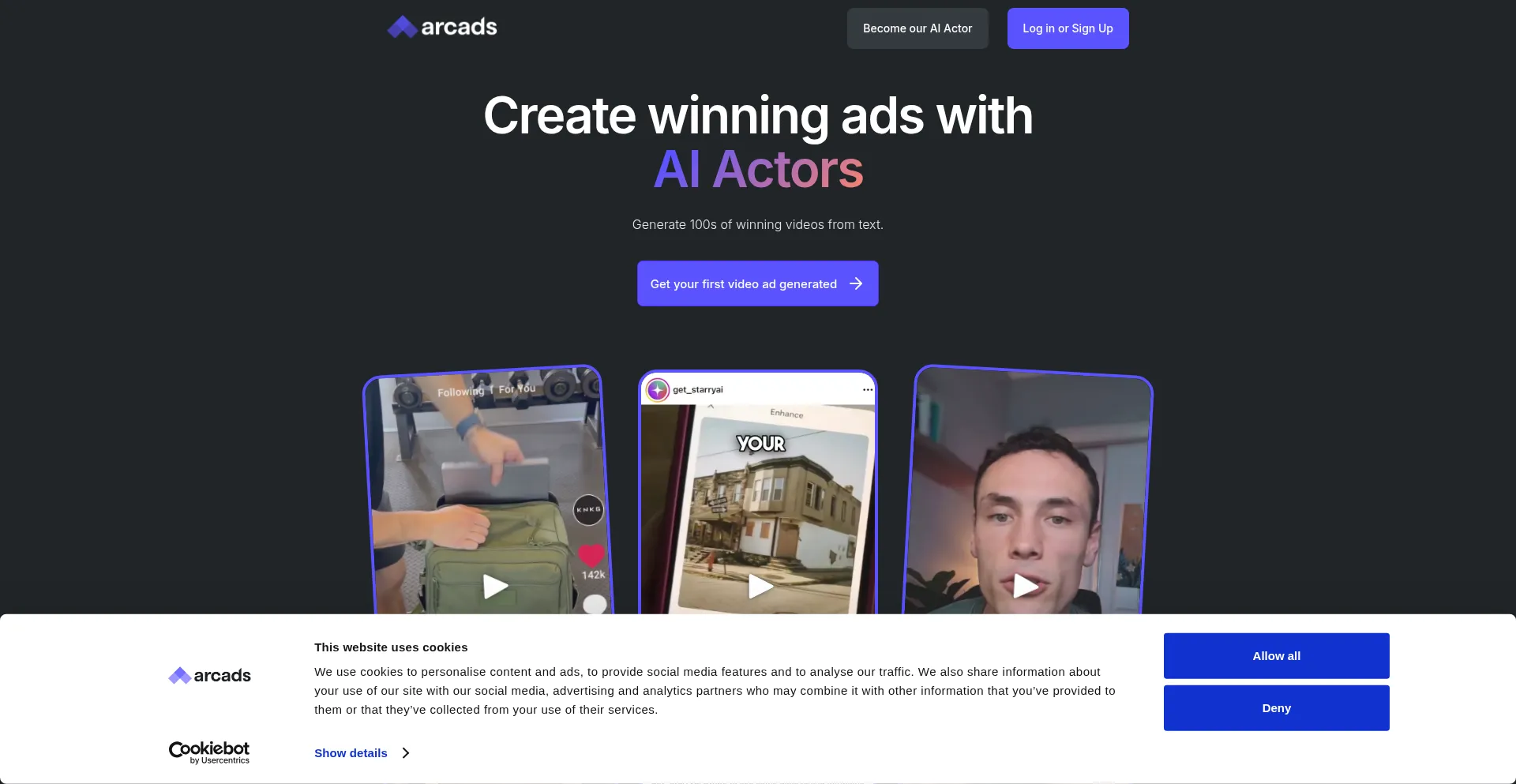 该网站实现符合GDPR或CCPA等隐私法规的cookie同意机制。这表明 arcads.ai 遵守数据保护标准并为用户提供对个人数据收集实践的控制。