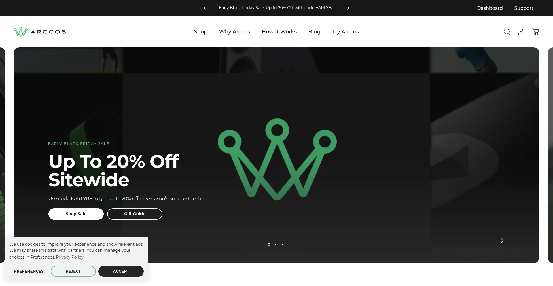 该网站实现符合GDPR或CCPA等隐私法规的cookie同意机制。这表明 arccosgolf.com 遵守数据保护标准并为用户提供对个人数据收集实践的控制。