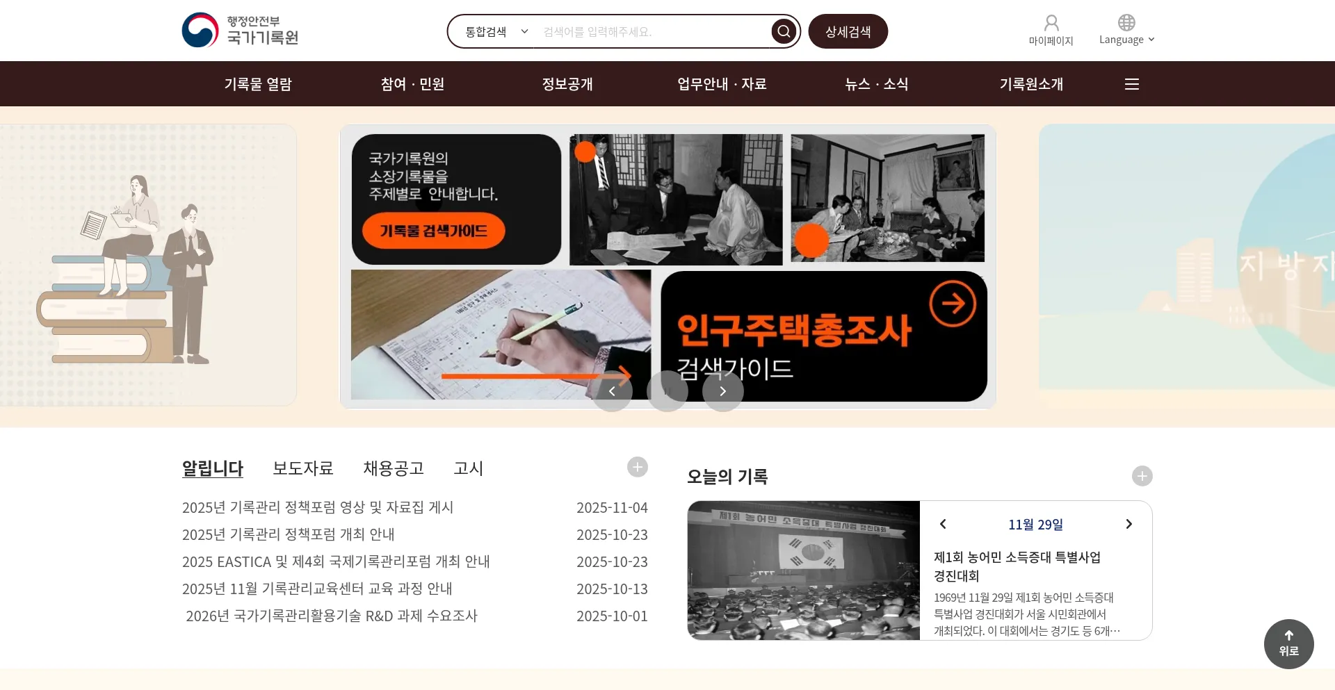网站上存在社交媒体链接表明 archives.go.kr 在社交媒体上维护官方账户,这是可信度和参与度的积极信号。