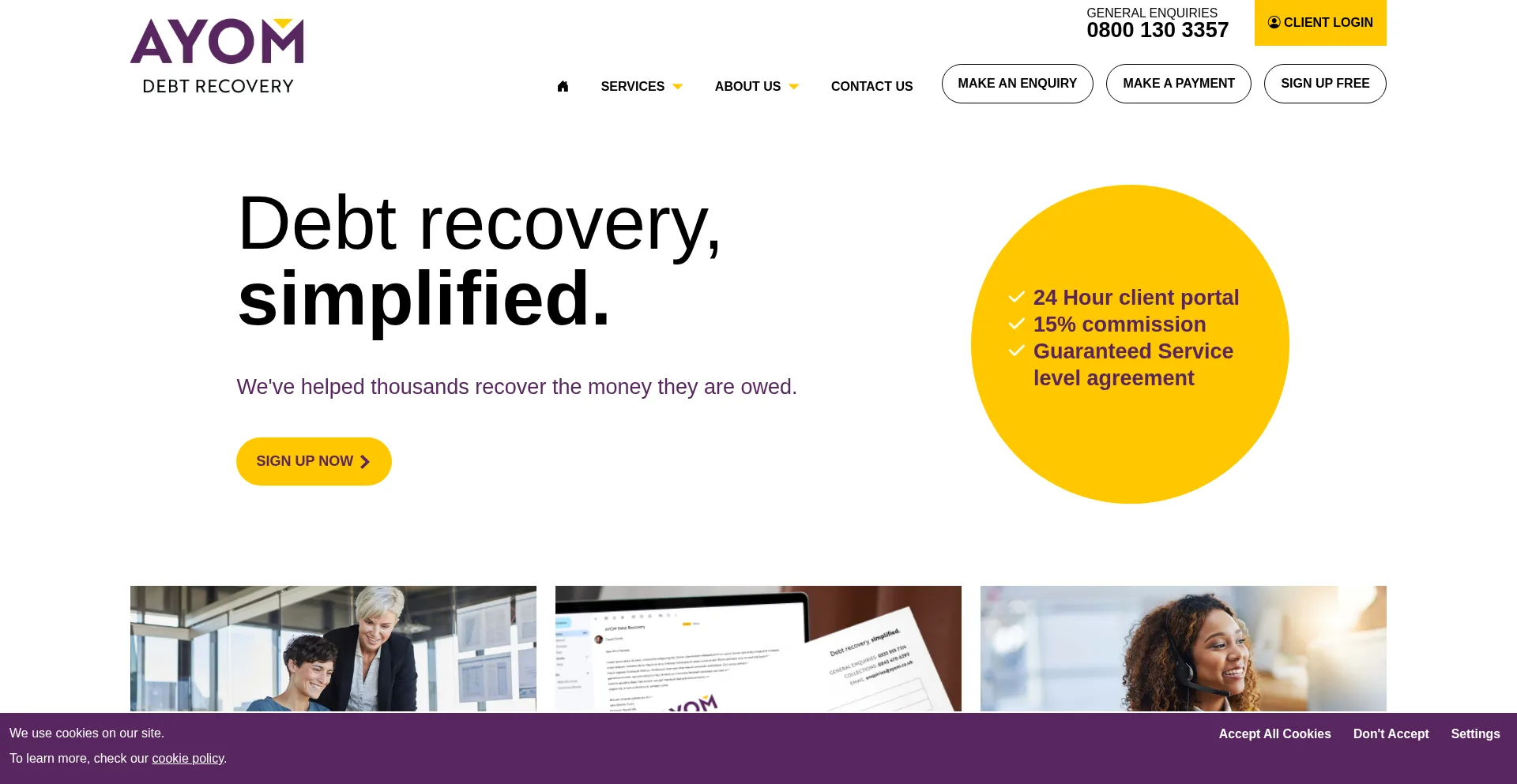 Thousands of debts collected. Recover the money you are owed. No win, no fee service. Interactive client portal. Ayom: debt recovery, simplified.