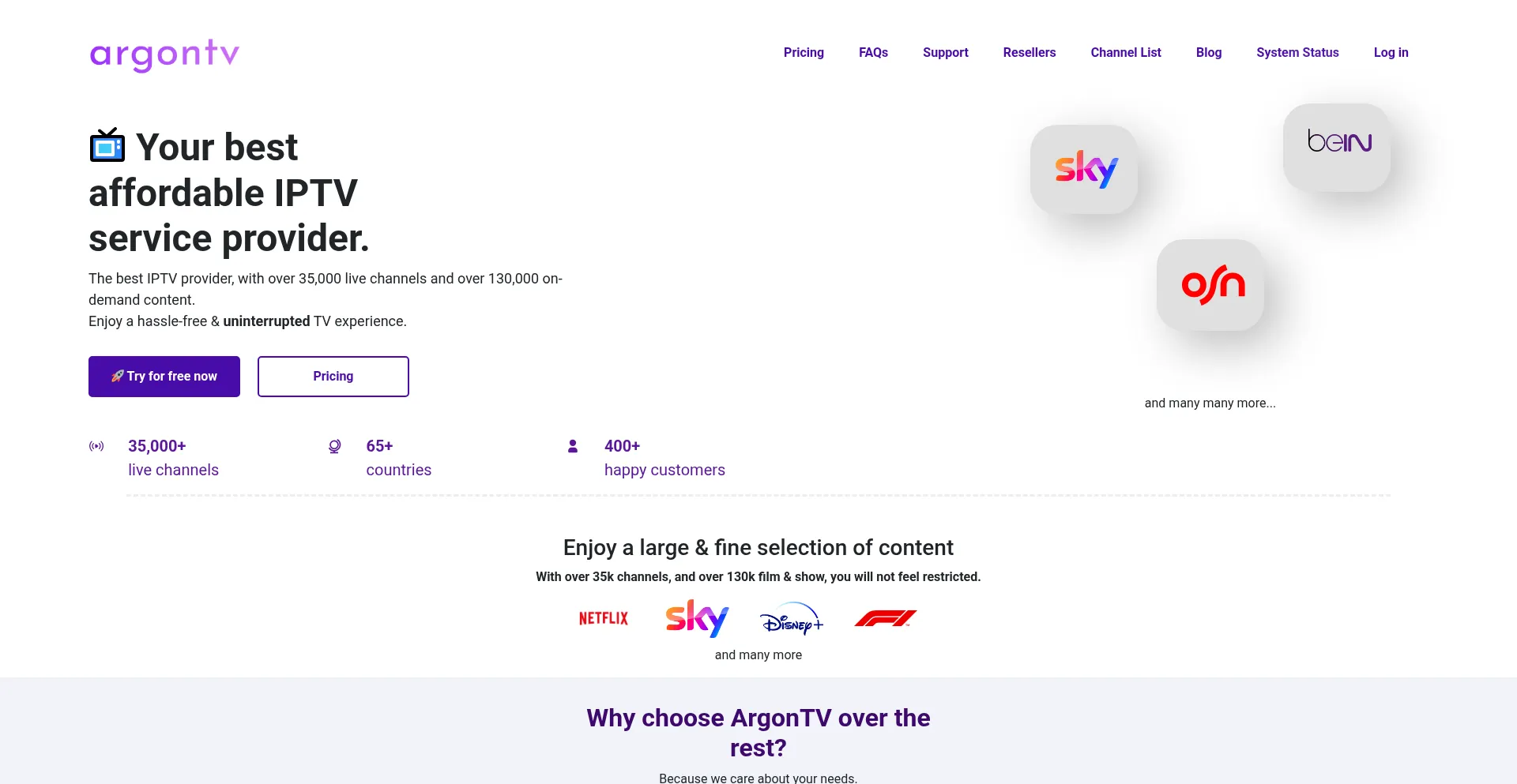 Experience the best IPTV, With over 35k channels and 130k on demand content, ArgonTV will not disappoint. Your reliable premium IPTV service provider