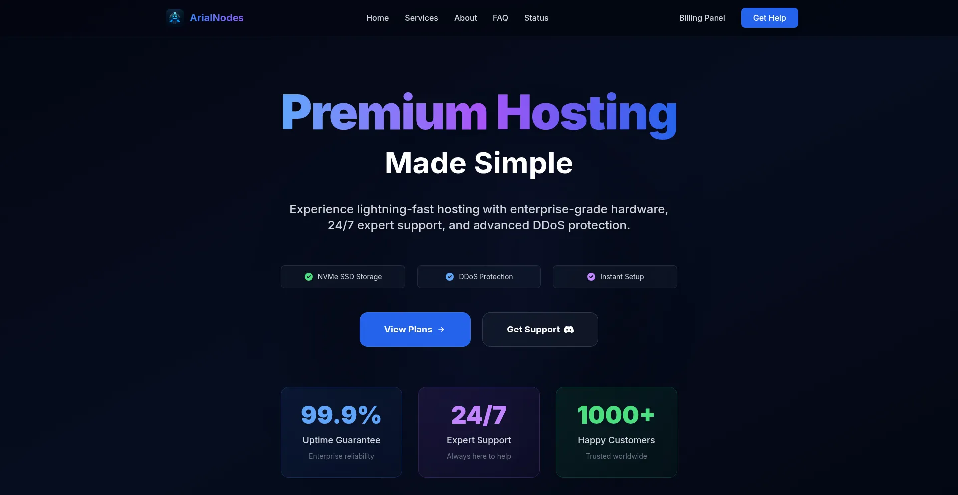ArialNodes offers premium hosting with high-performance servers,protection, and 24/7 support at affordable prices.