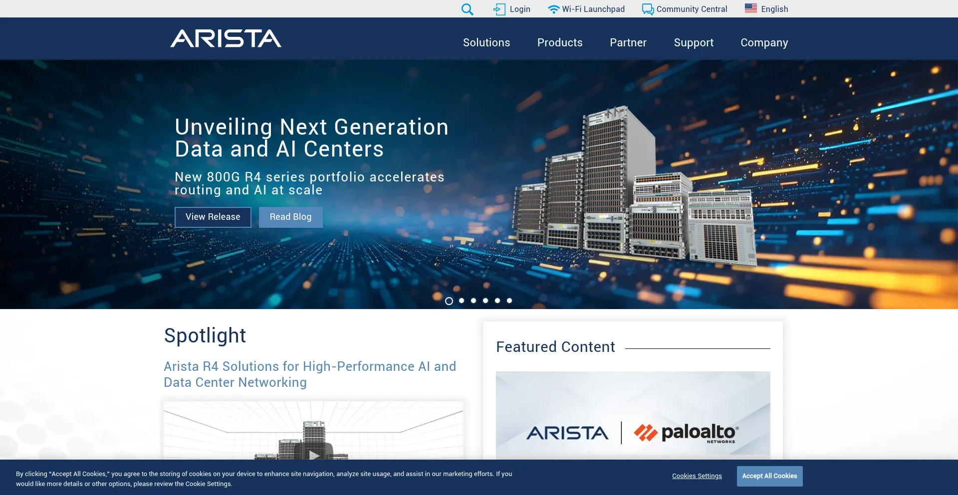 该网站实现符合GDPR或CCPA等隐私法规的cookie同意机制。这表明 arista.com 遵守数据保护标准并为用户提供对个人数据收集实践的控制。