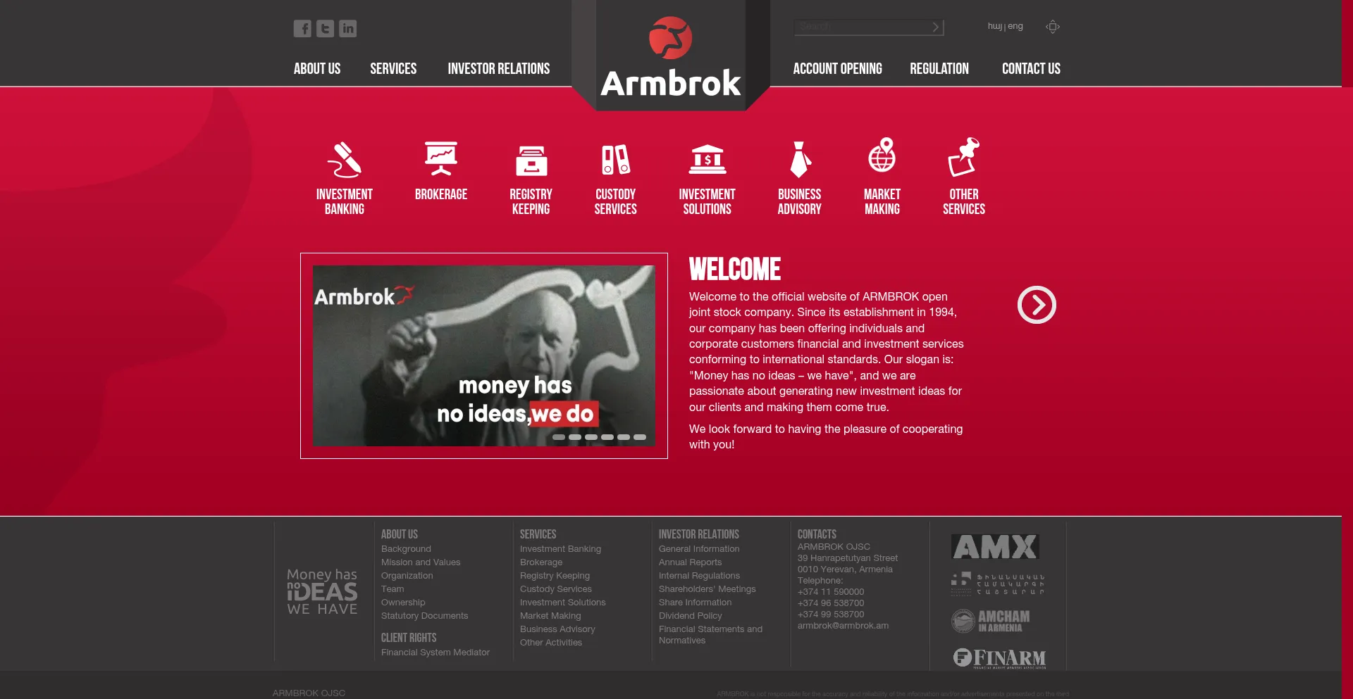 网站上存在社交媒体链接表明 armbrok.am 在社交媒体上维护官方账户,这是可信度和参与度的积极信号。