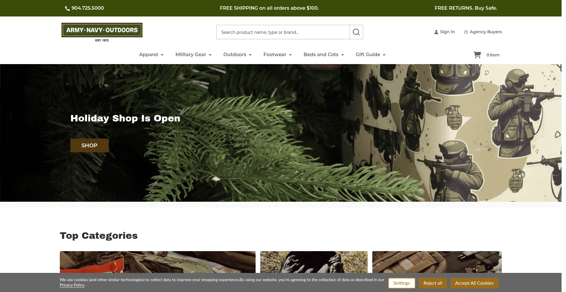 Online U.S. Army Surplus and Military Tactical Super Store with Outdoor Gear, Medical, Survival and Emergency Supplies in an expansive 80,000 sqft of military surplus.