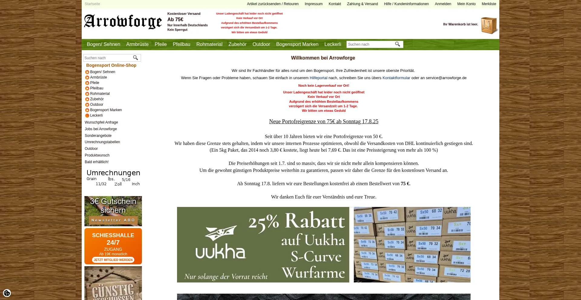 ARROWFORGE- Alles für den Bogen und Armbrustschützen. Von A wie Armschutz bis Z wie Zielscheibe. - Kostenfreier Versand ab 75€ in DE