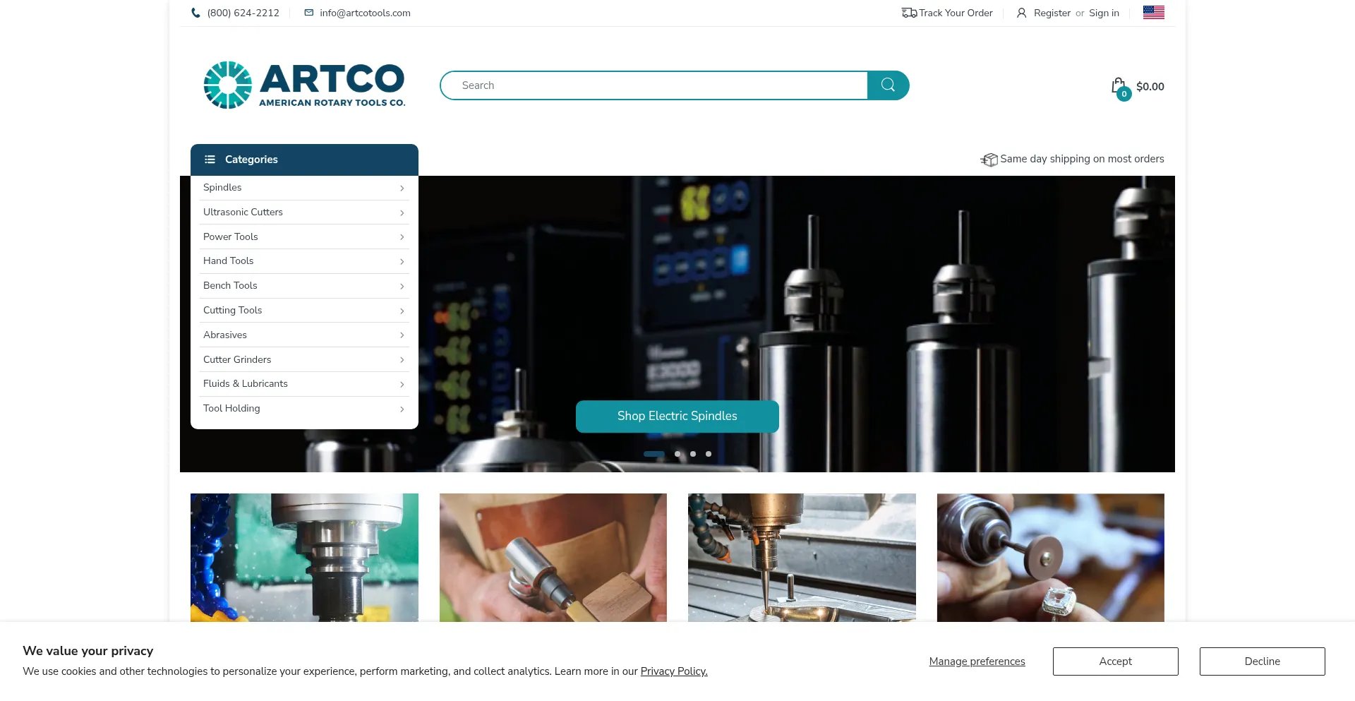 该网站实现符合GDPR或CCPA等隐私法规的cookie同意机制。这表明 artcotools.com 遵守数据保护标准并为用户提供对个人数据收集实践的控制。