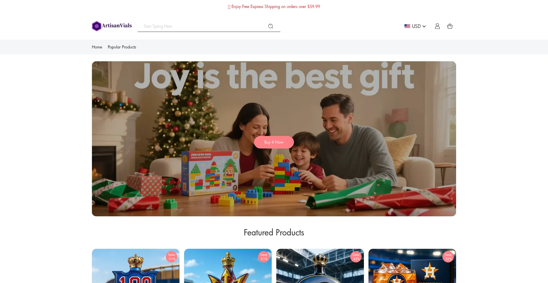 分析表明 artisanvials.com 作为电子商务平台运营,促进商品或服务的在线交易。该网站实现了购物车功能、支付处理系统和产品目录功能,这些是商业零售运营的典型特征。