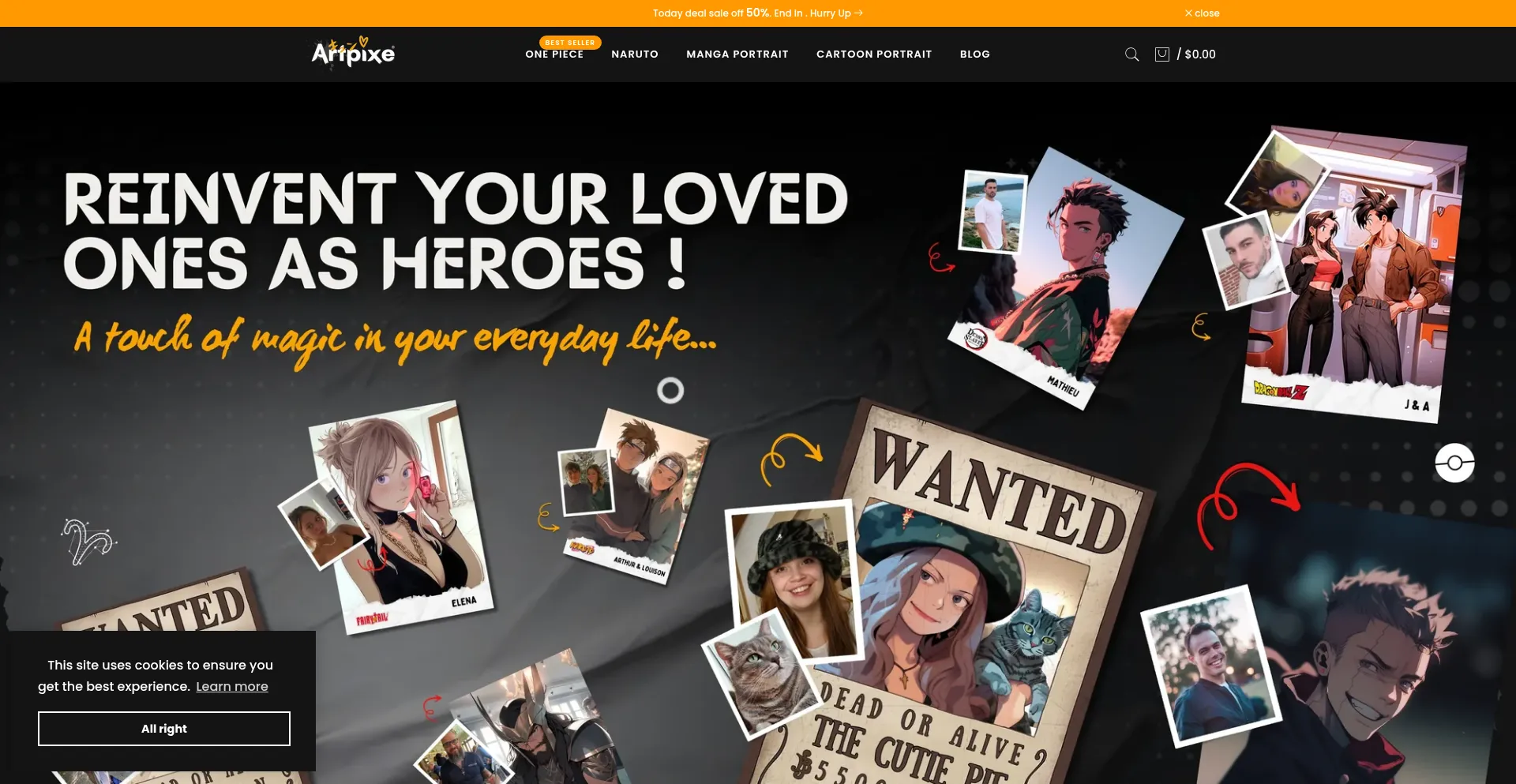Create your personalized portrait of your favorite anime on Artpixe from your photos! An original gift idea Made in France to offer for any occasion.