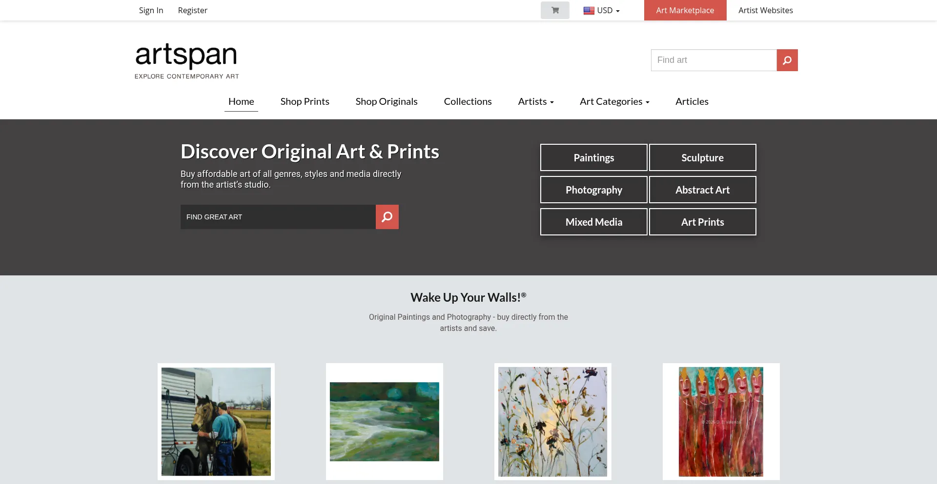 Wake up your walls with artwork from Artspan! We offer a wide selection of art online from independent artists and can help you create your own artist website.