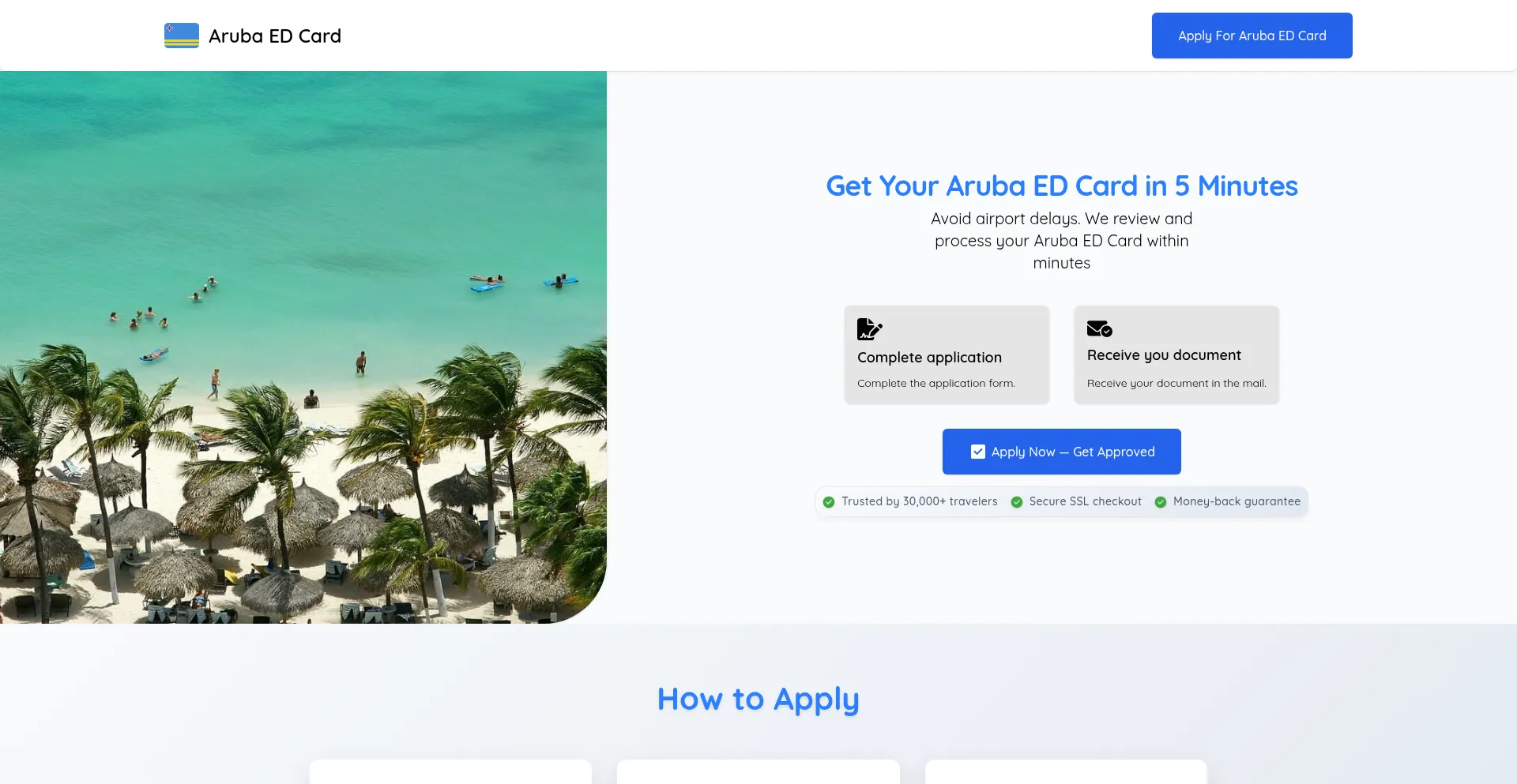 Get your Aruba Tourist Card quickly and easily with our streamlined digital service. Complete your Electronic Entry/Exit Card registration online and simplify your travel experi...