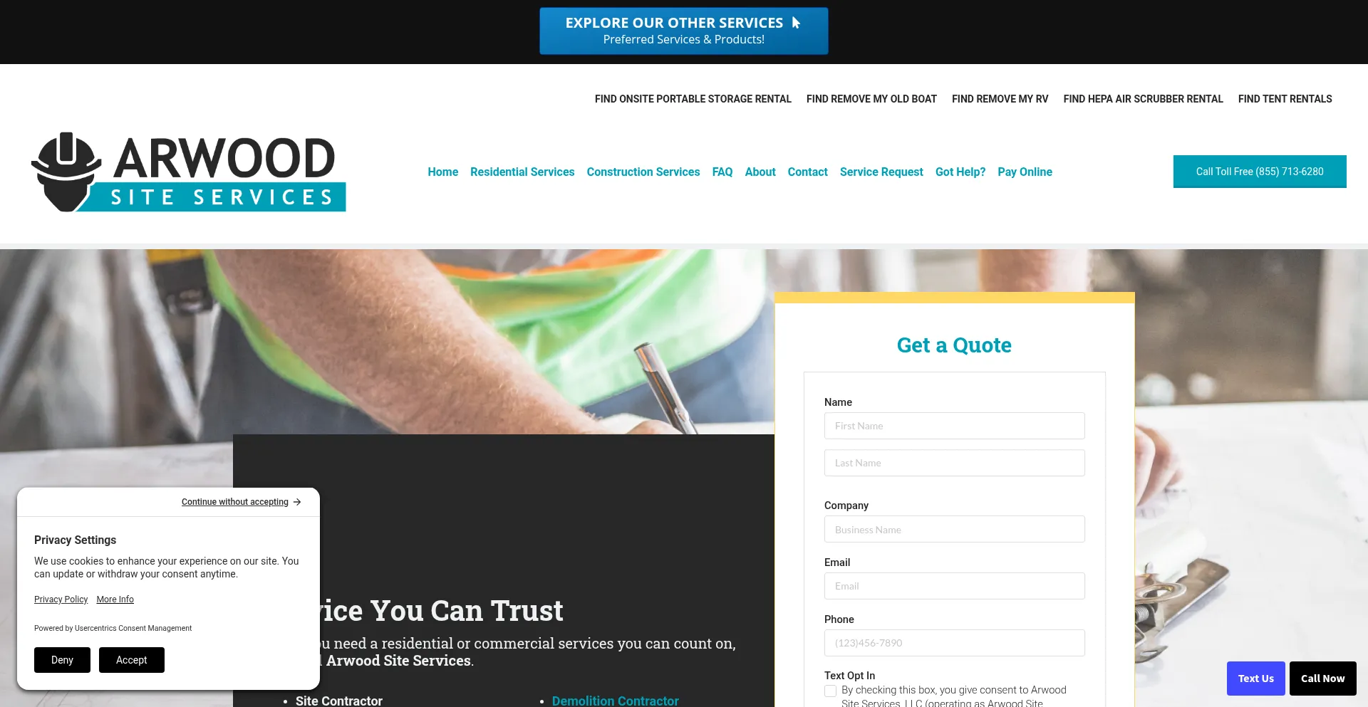 网站上存在社交媒体链接表明 arwoodsiteservices.com 在社交媒体上维护官方账户,这是可信度和参与度的积极信号。
